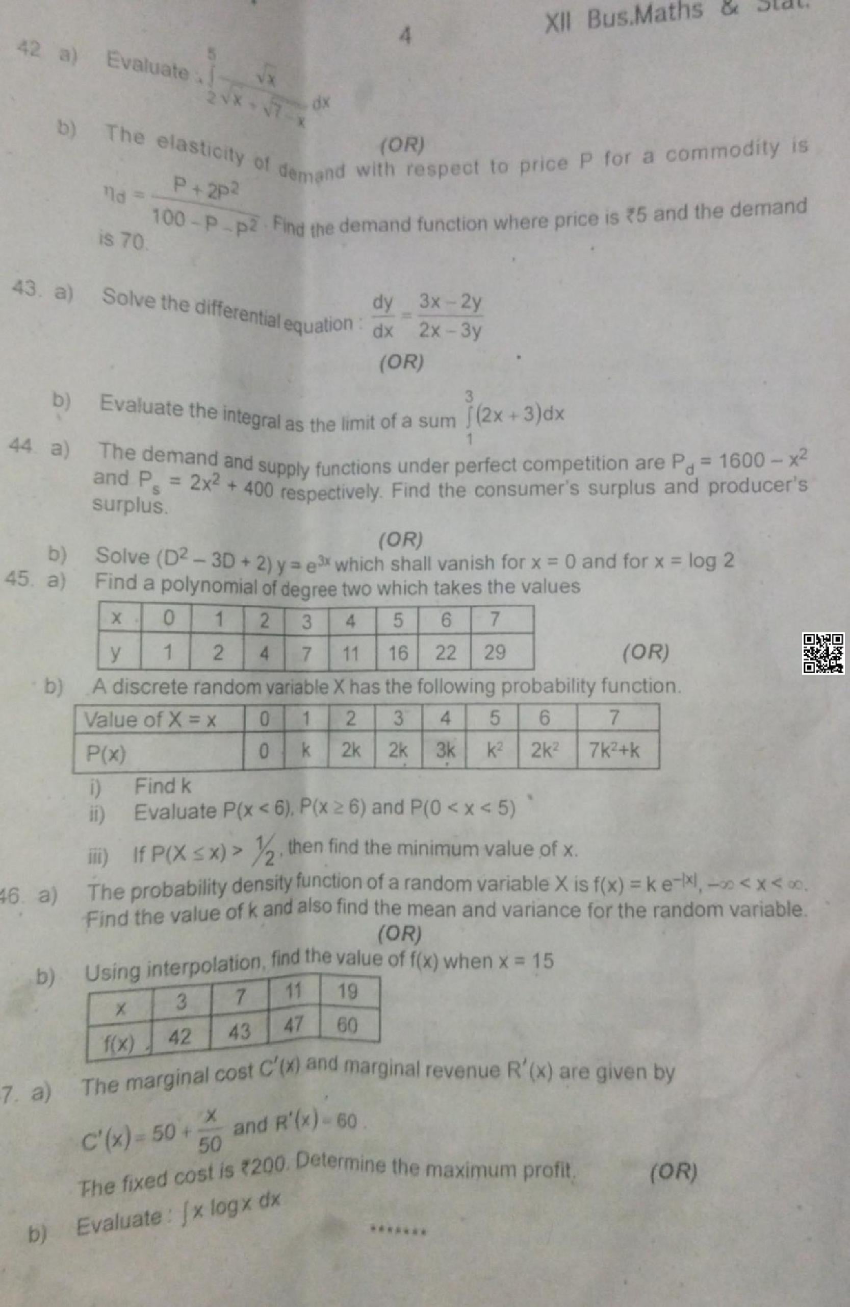 | Subject | Business Maths |