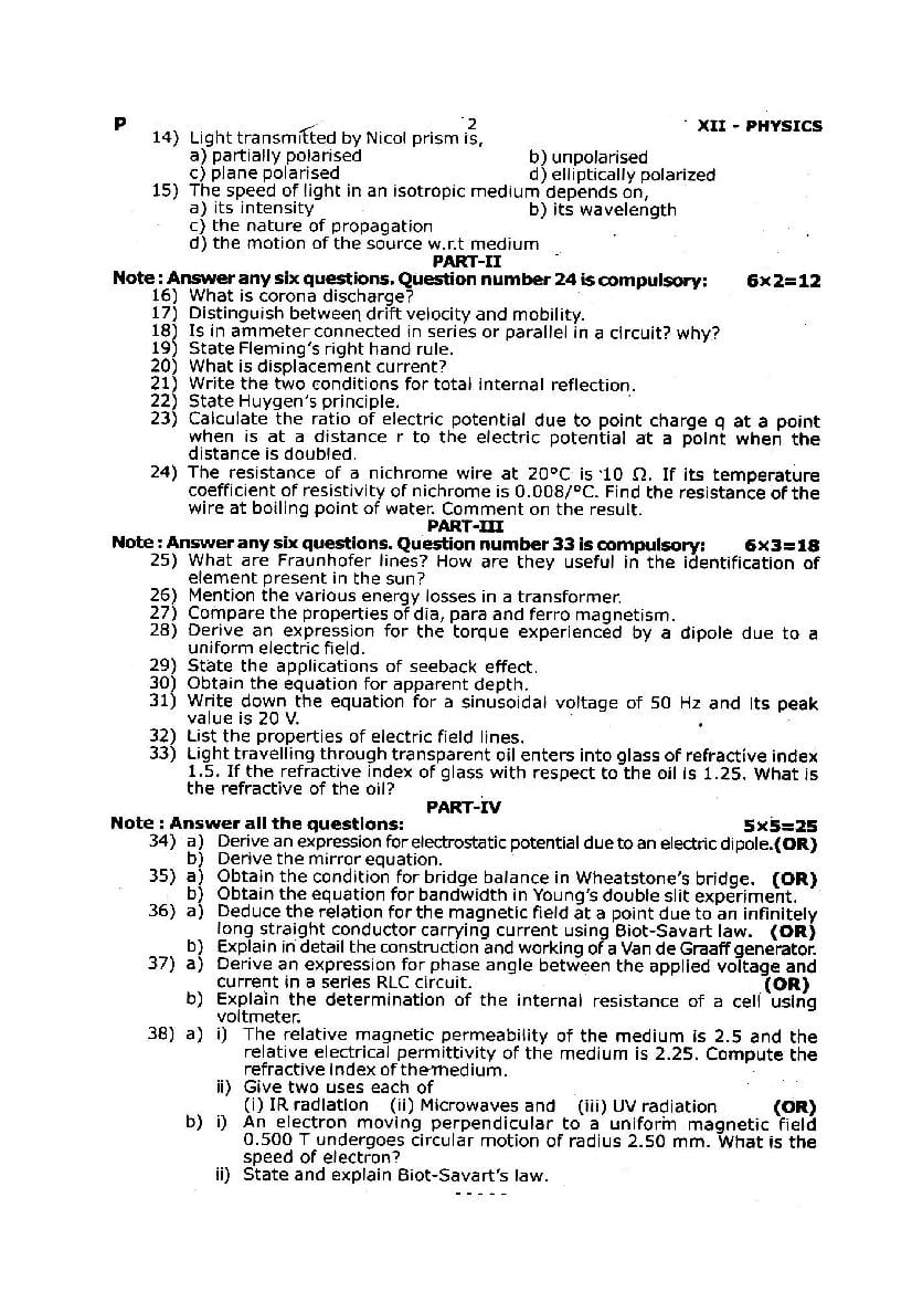| Paper Here | 12th Quarterly Exam Question Paper of Physics |