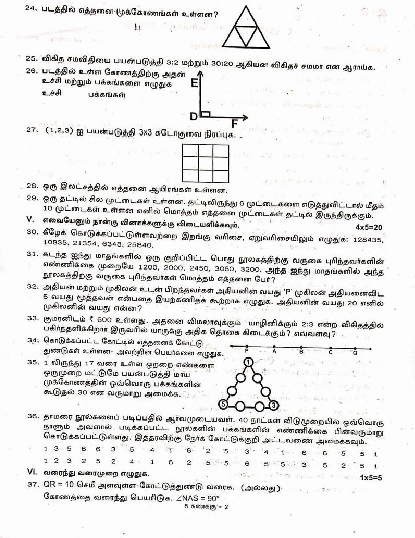 | Paper Here | 6th Quarterly Exam Question Paper of Maths |