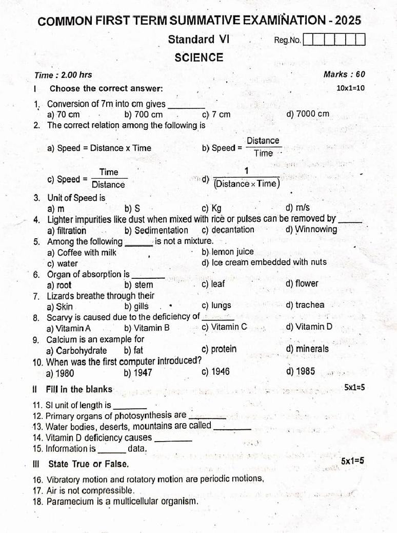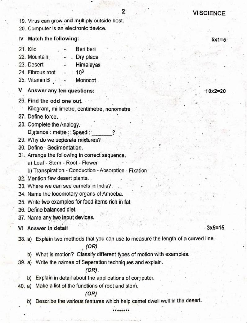 | Paper Here | 6th Quarterly Exam Question Paper of Science |