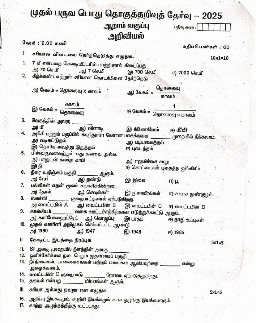 If you have queries on TN 6th Science Quarterly Exam Question Paper 2026, then please ask in comments below.