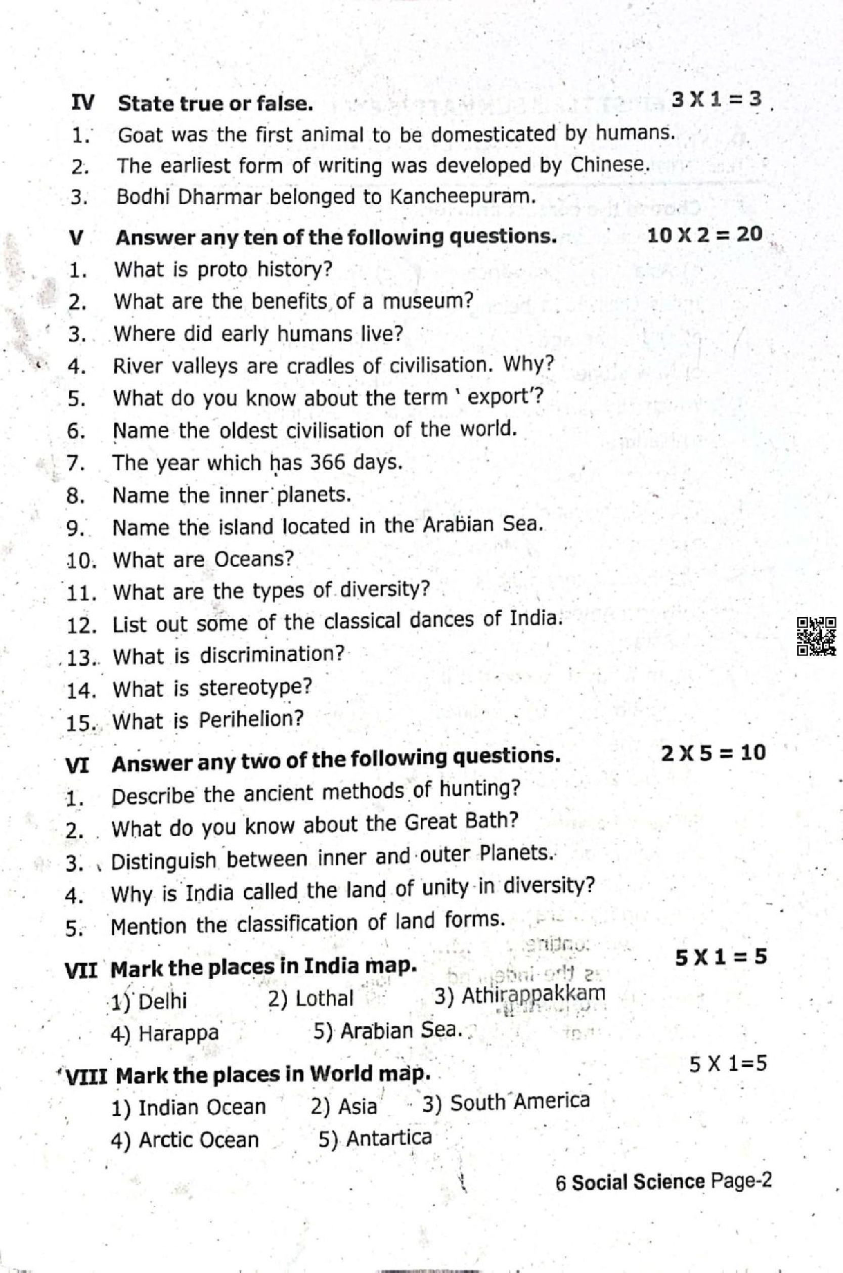 | Paper Here | 6th Quarterly Exam Question Paper of Social Science |