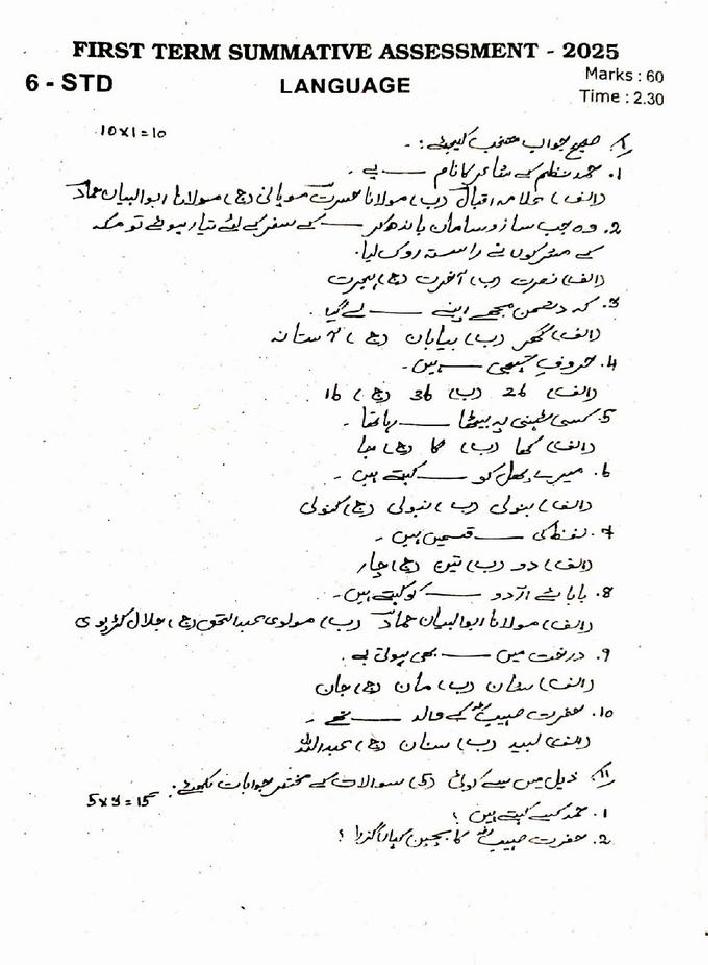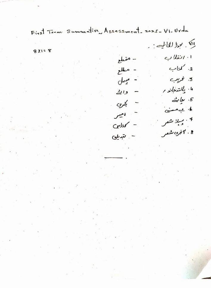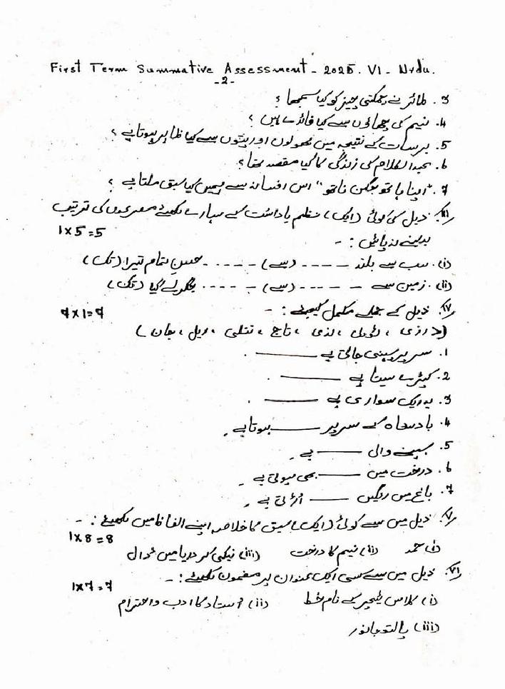 | Paper Here | 6th Quarterly Exam Question Paper of Urdu |