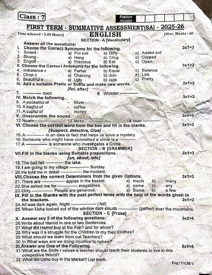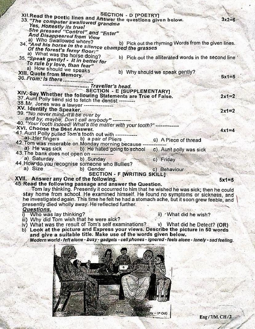 | Paper Here | 7th Quarterly Exam Question Paper of English |
