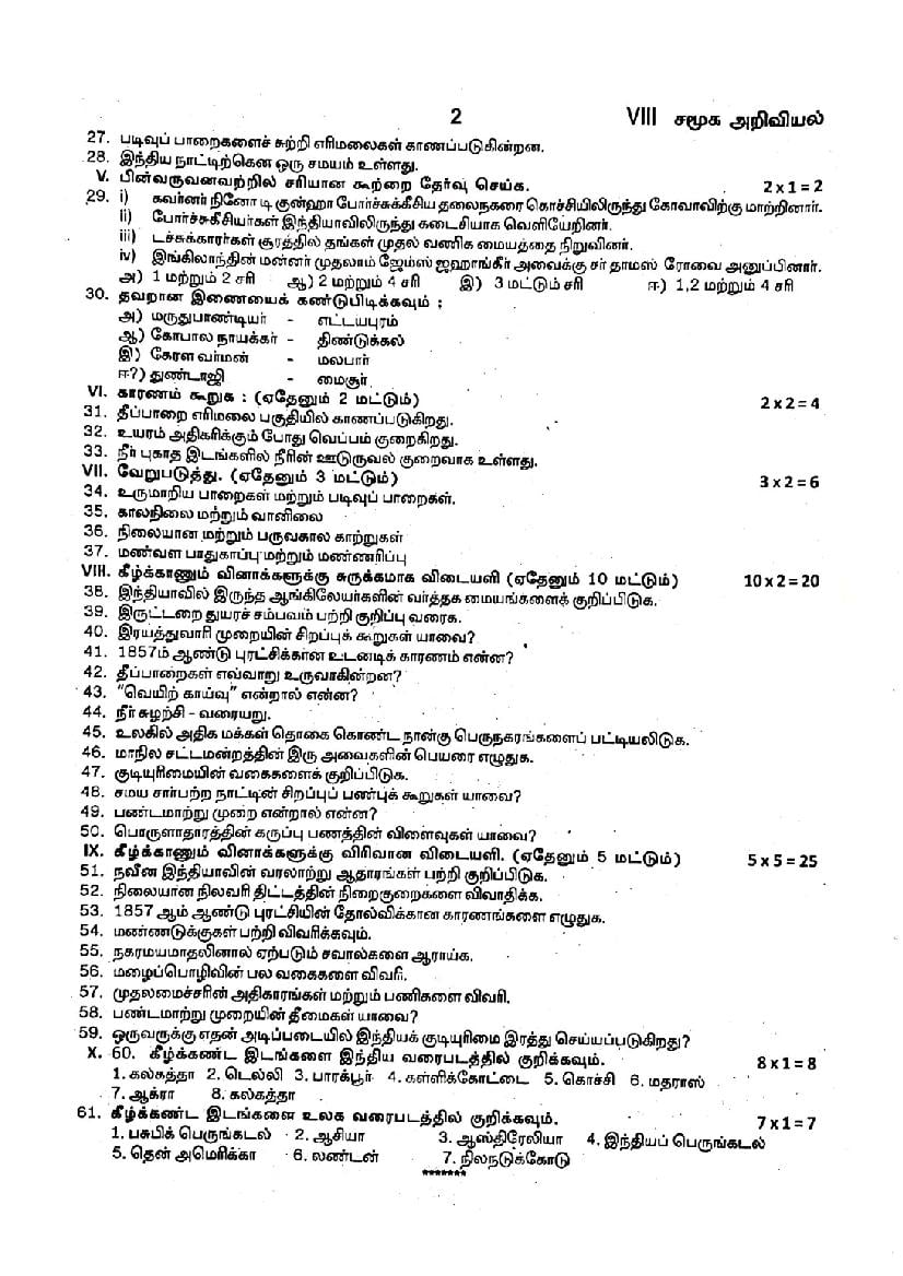 The TN Board question paper for quarterly exam of 8th standard Social Science subject is as follows.