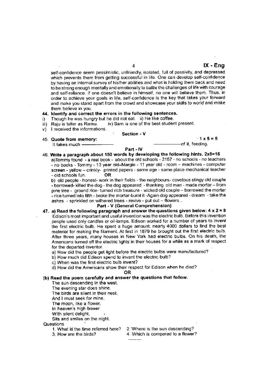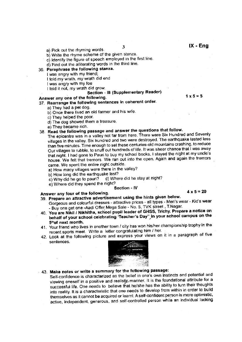 | Paper Here | 9th Quarterly Exam Question Paper of English |