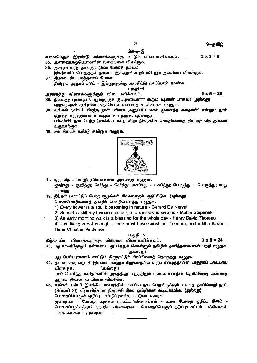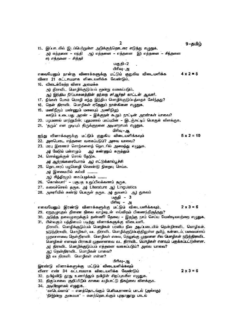 The TN Board question paper for quarterly exam of 9th standard Tamil subject is as follows.