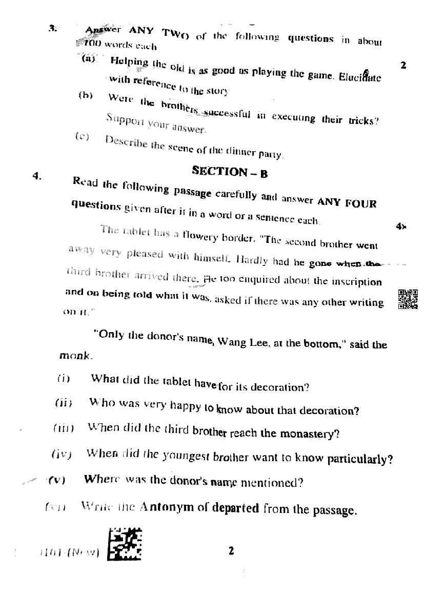 The complete English question paper is as follows.