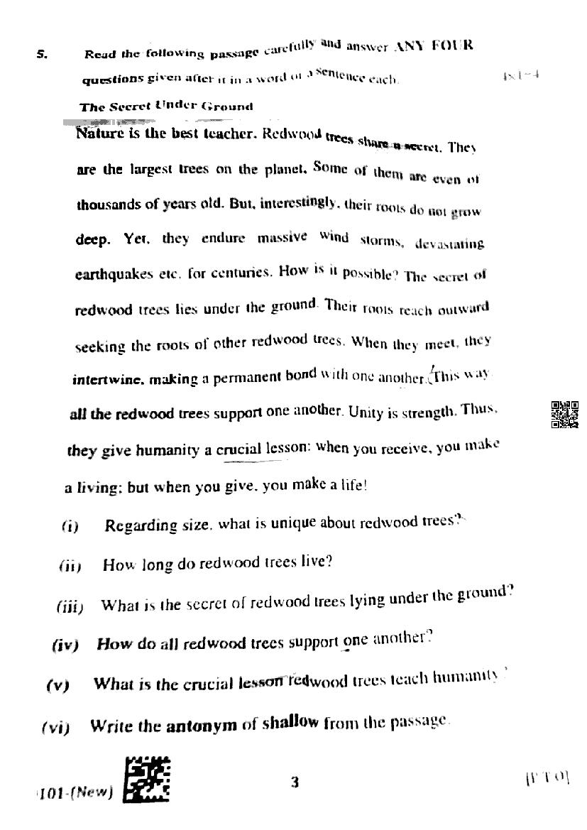 | Study Material Here | Telangana Board Question Paper of Class 10 English |