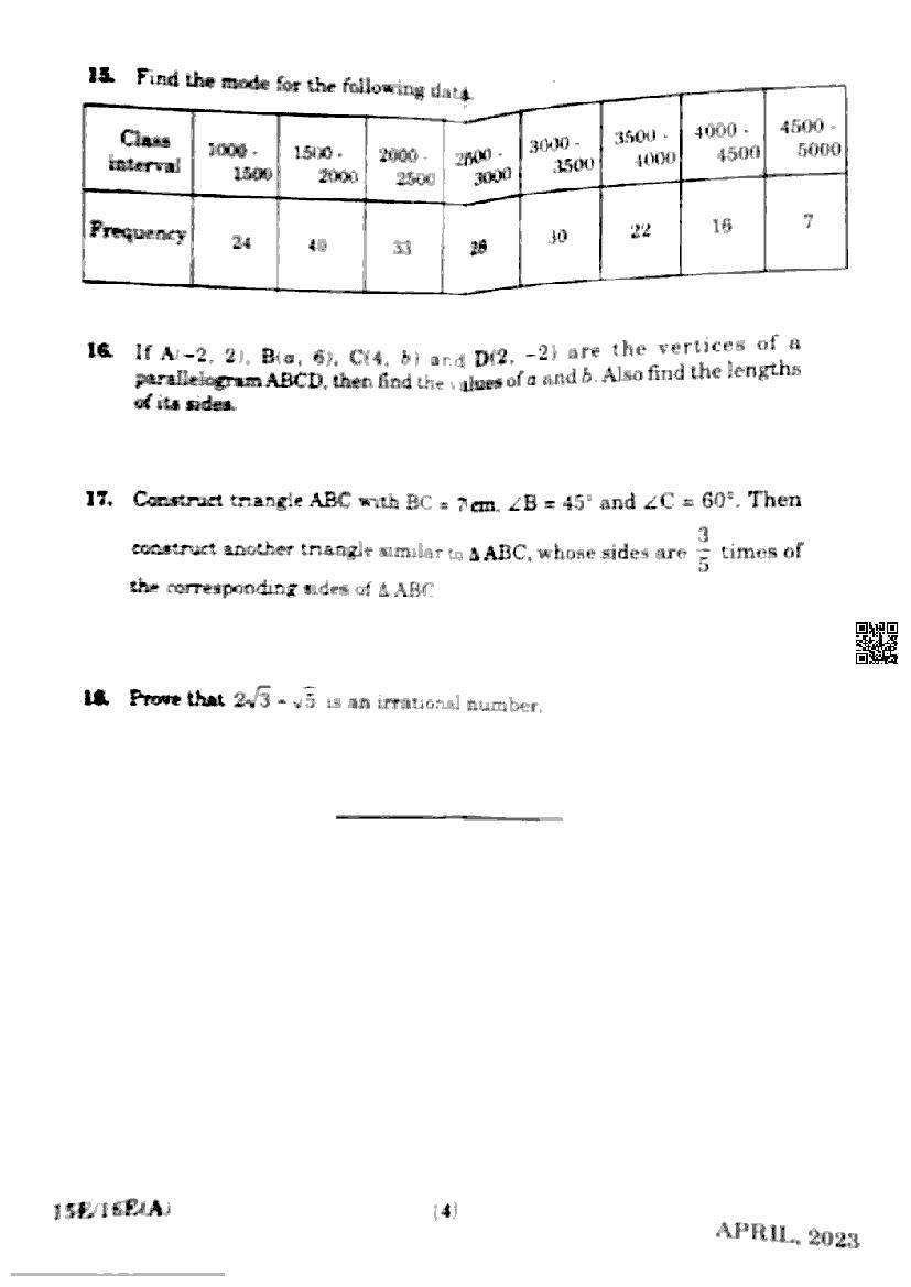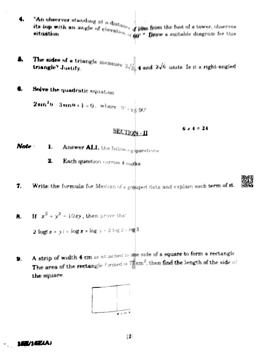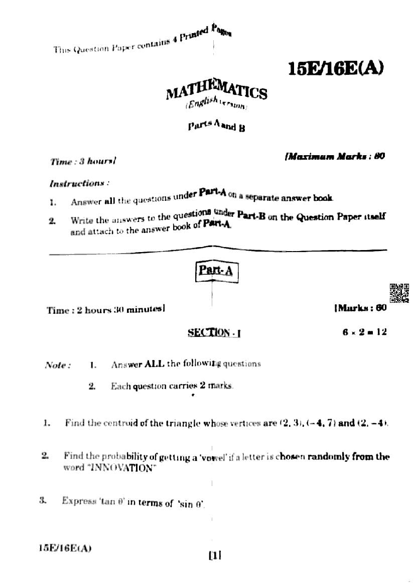 Telangana Class 10 Question Paper 2024 Mathematics View Download