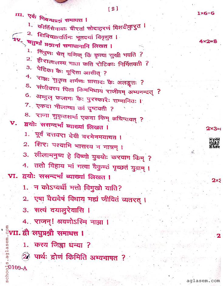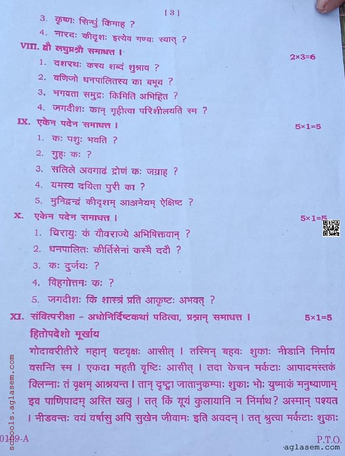 The complete Sanskrit question paper is as follows.