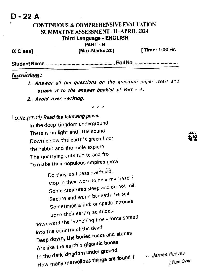 If you have any queries on Telangana Board Class 9 English Question Paper 2024, then please ask in comments below.