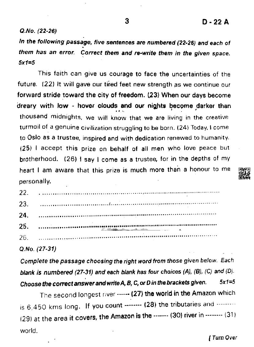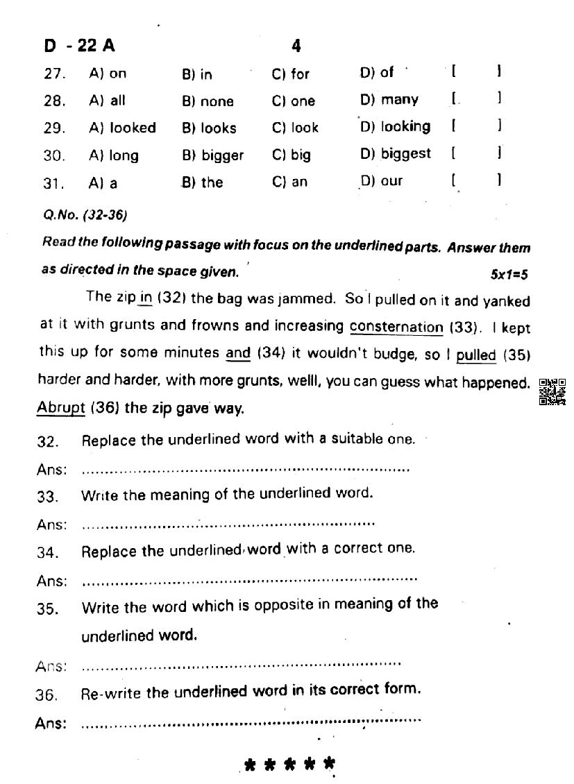 The complete English question paper is as follows.