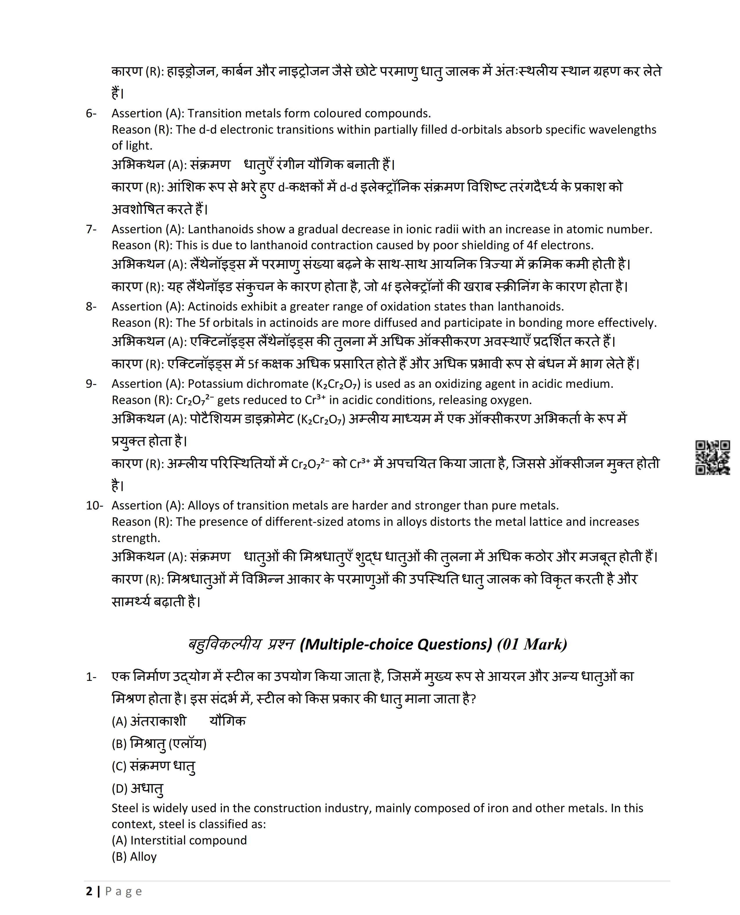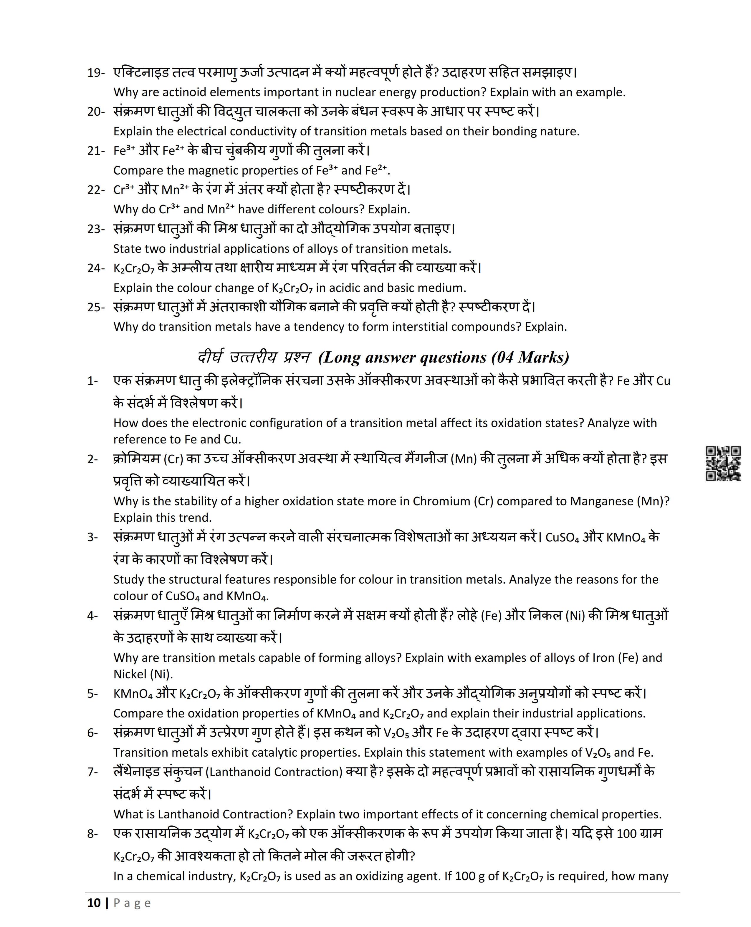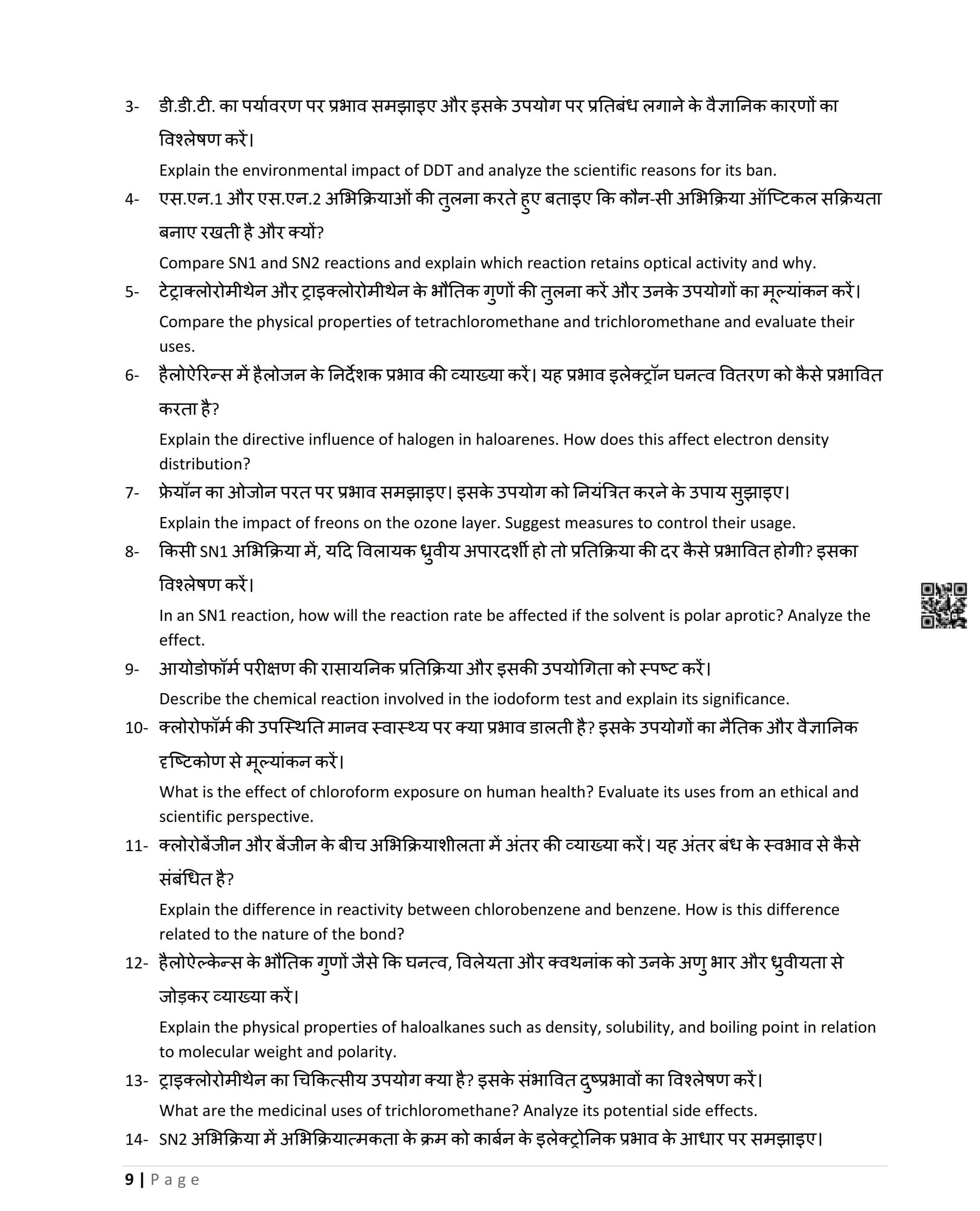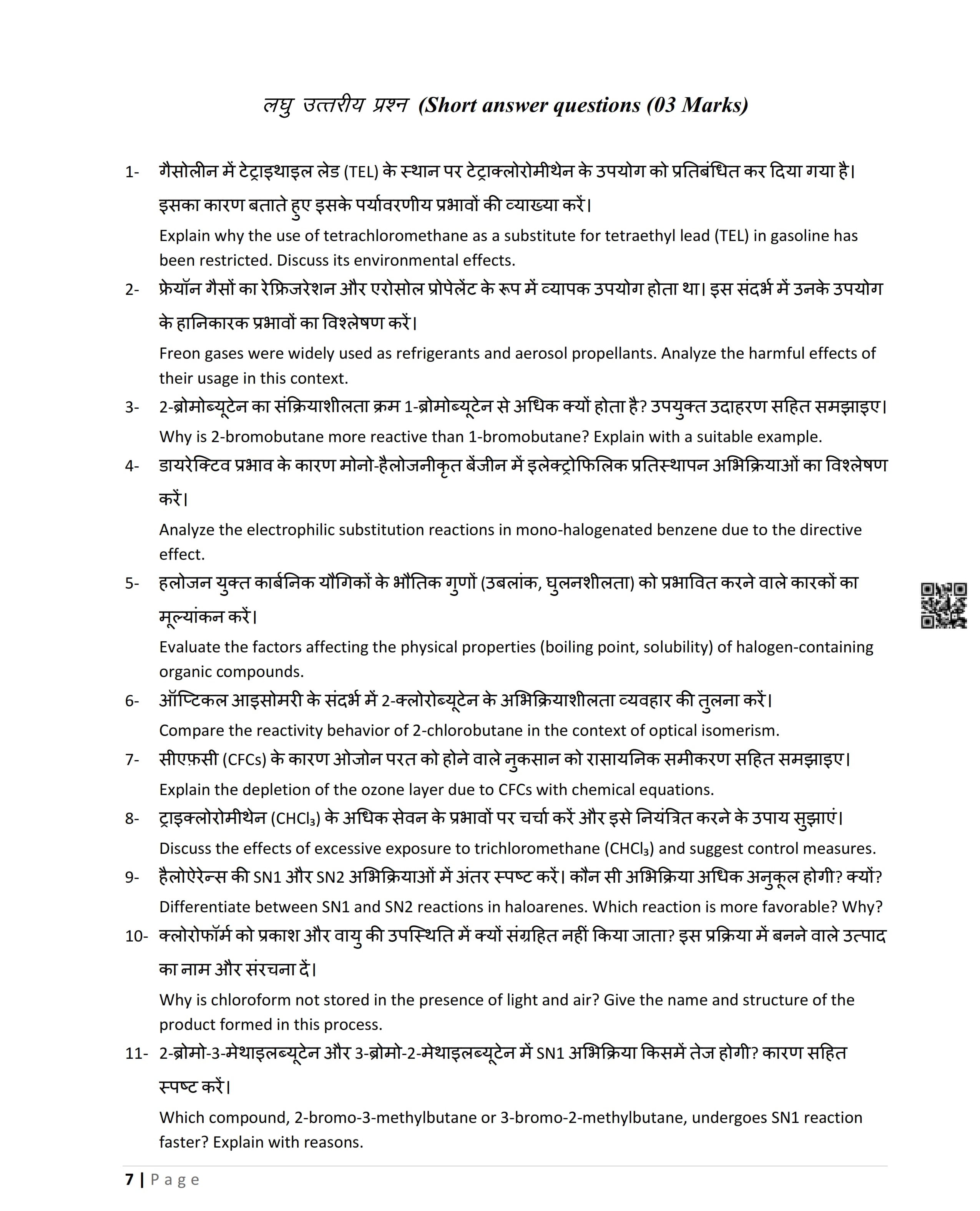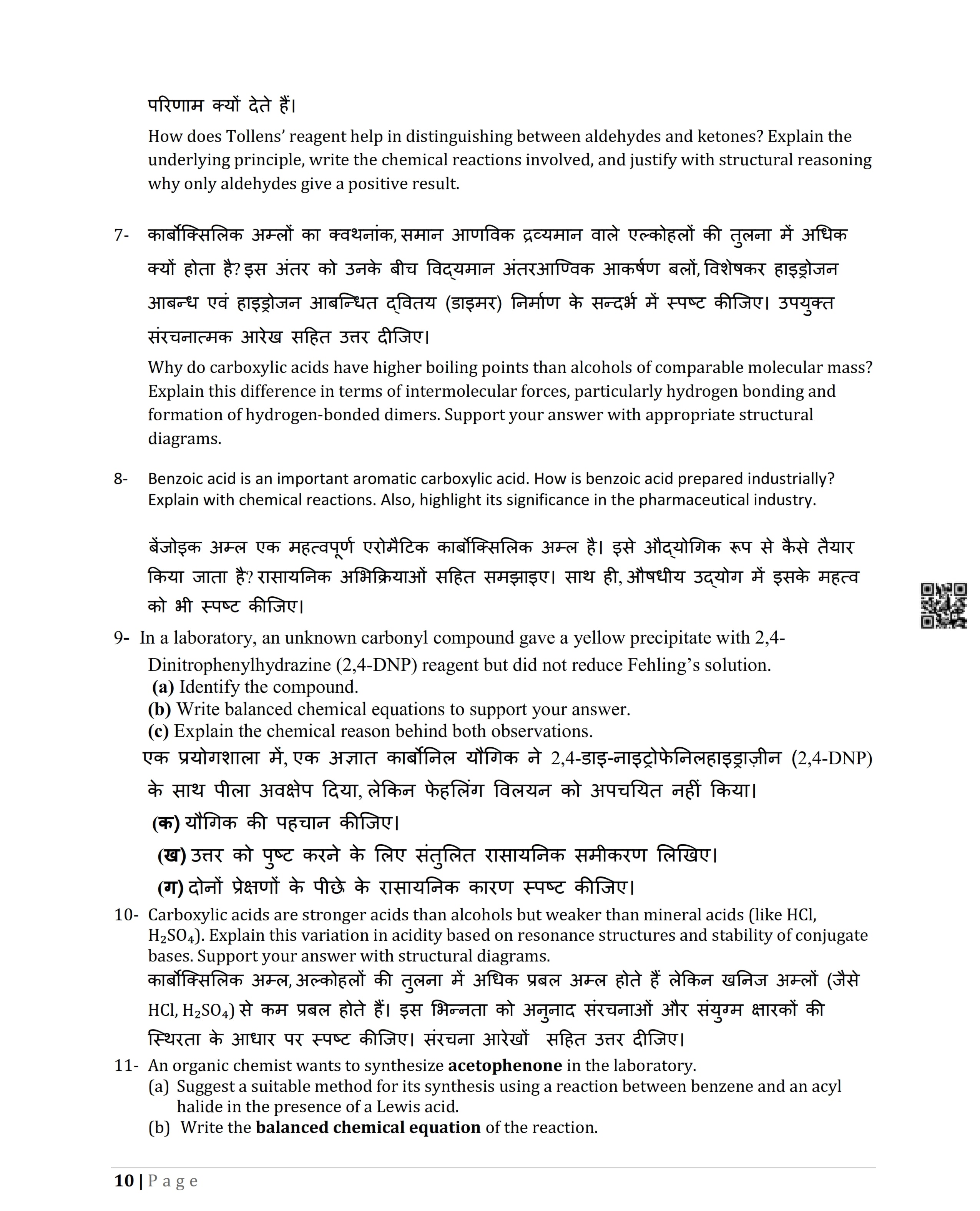 The question bank for Uttarakhand class 12 Chemistry is as follows.