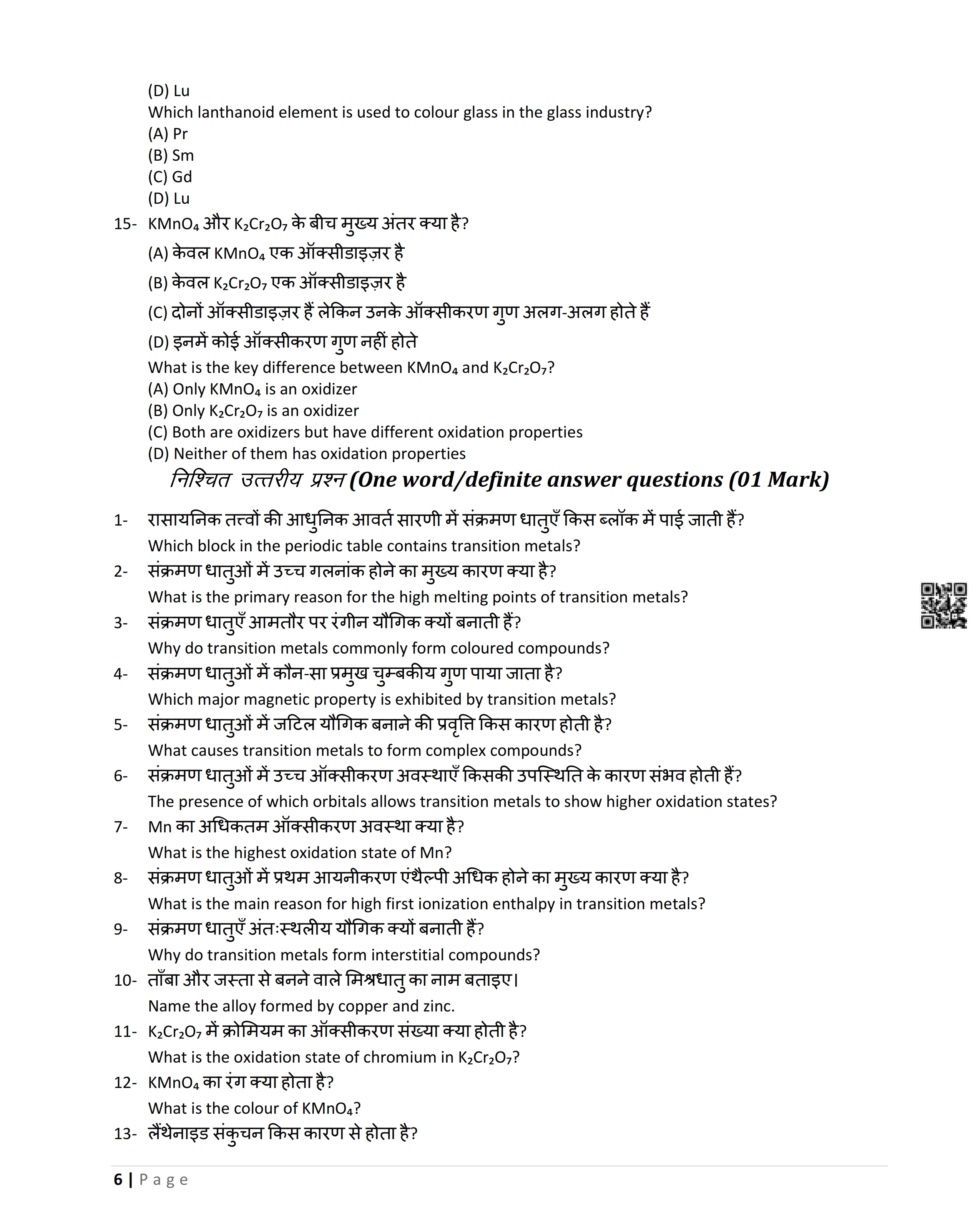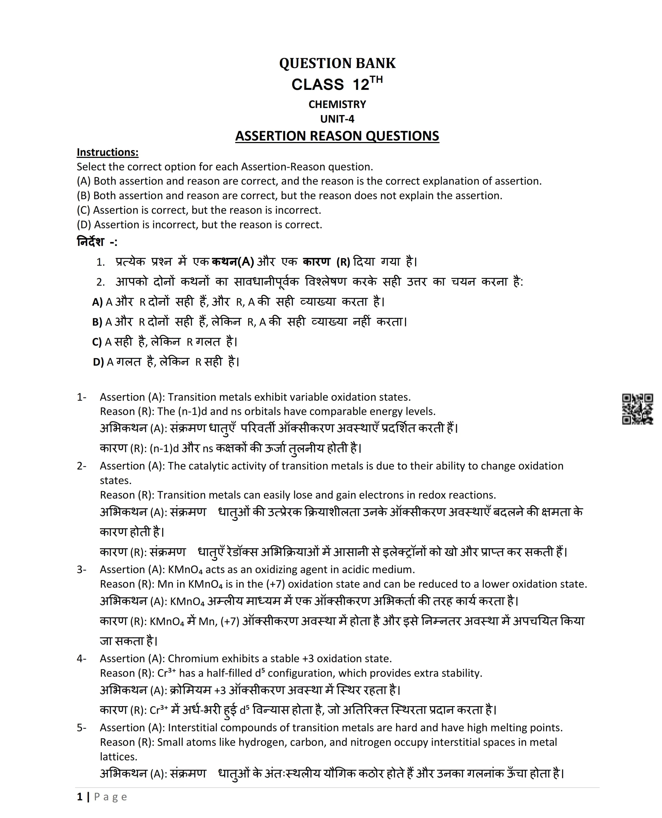 | Educational Resource Here | Class 12th Question Bank for Chemistry |