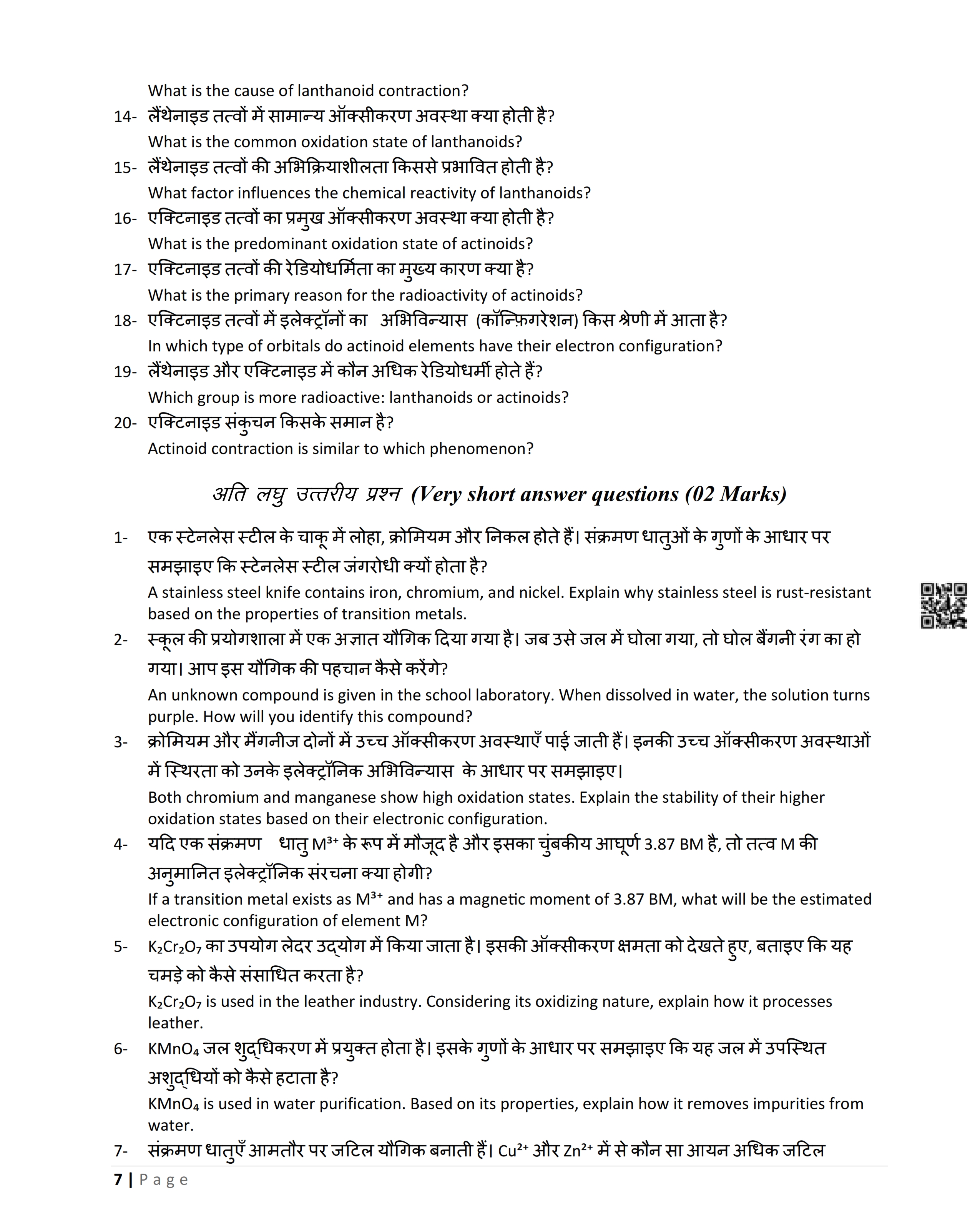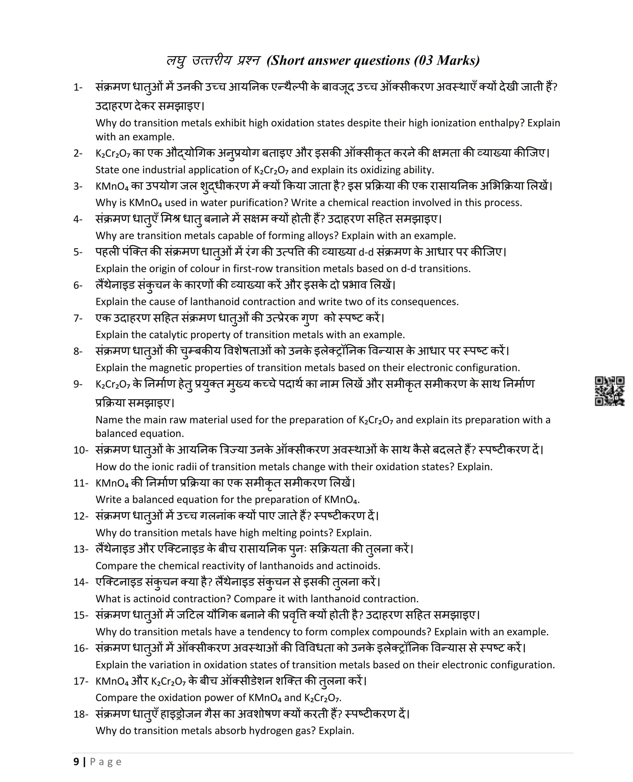 Uttarakhand Board Class 12 Question Bank Chemistry View Download
