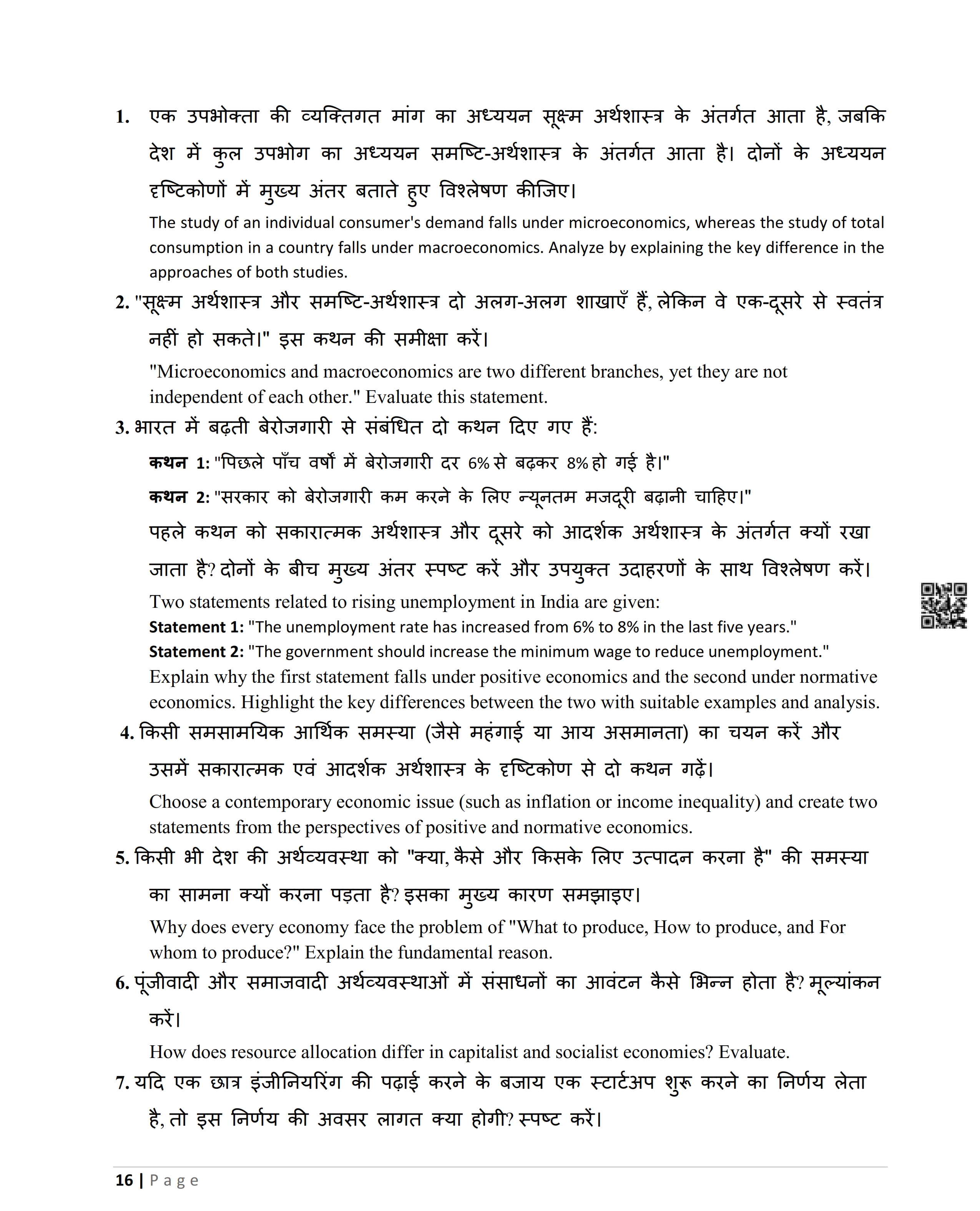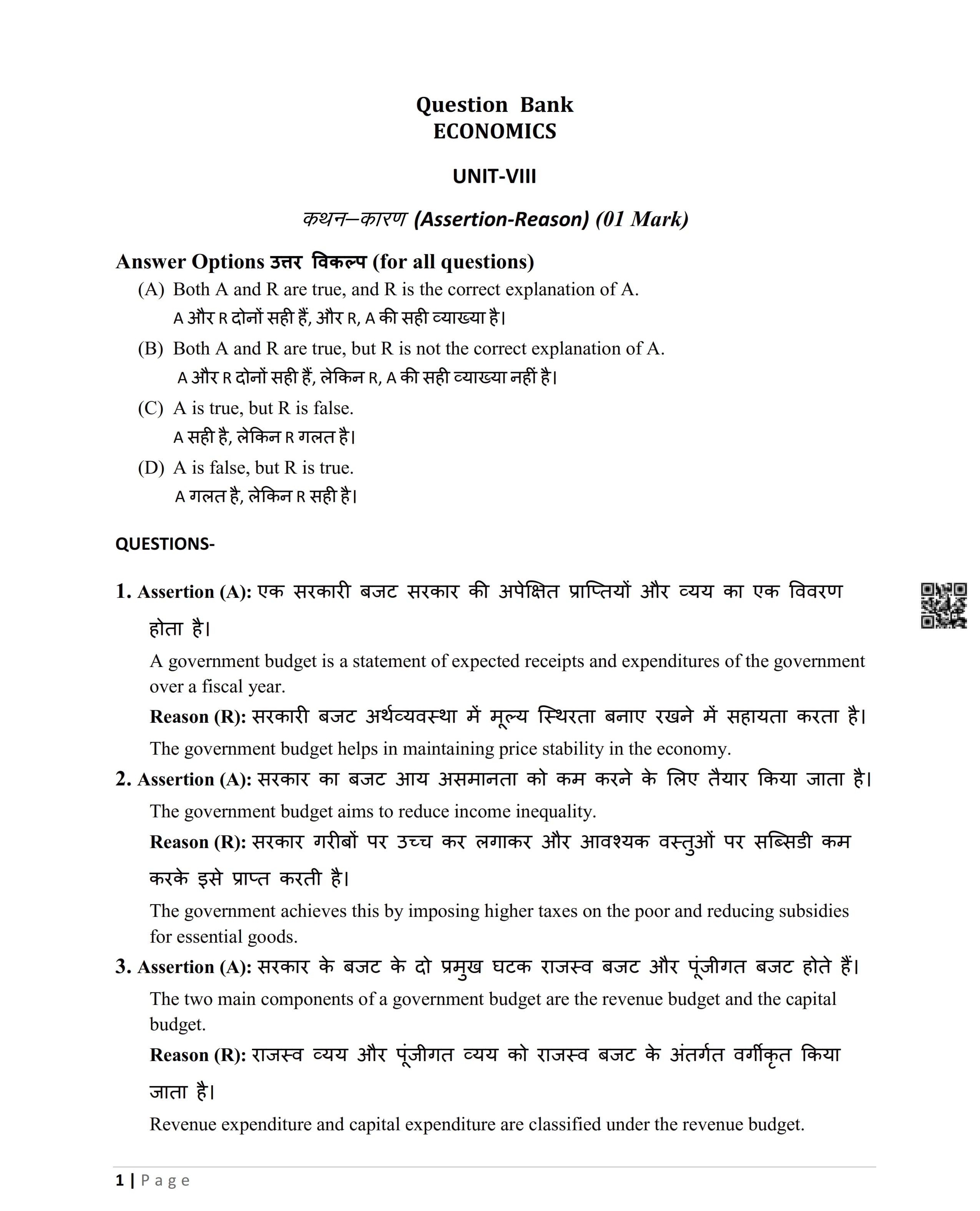 | Educational Resource Here | Class 12th Question Bank for Economics |