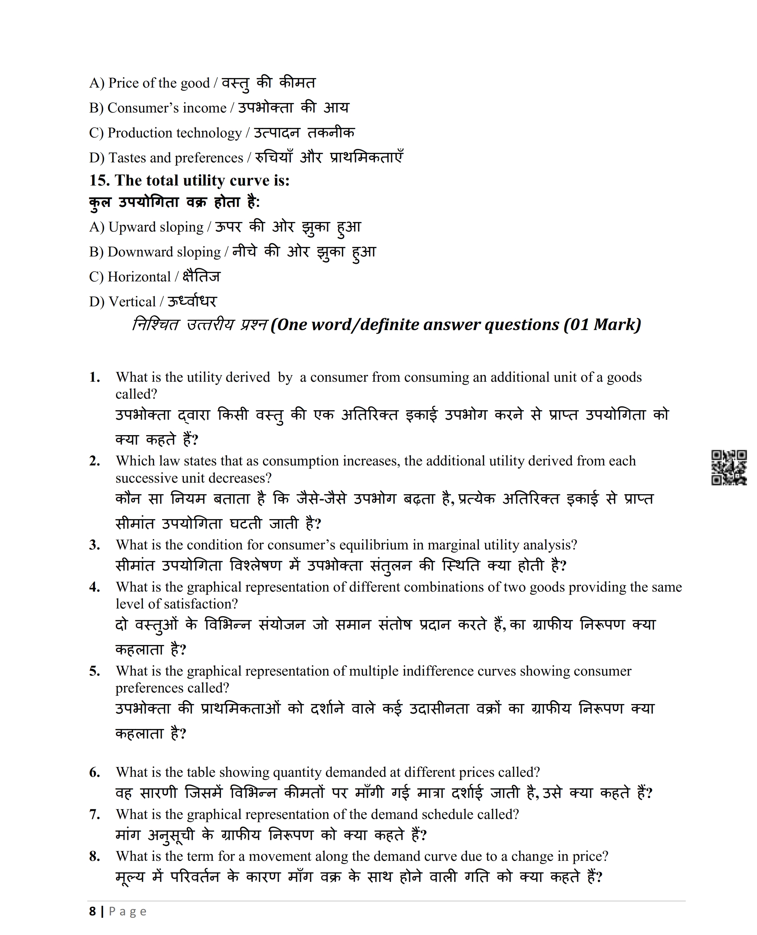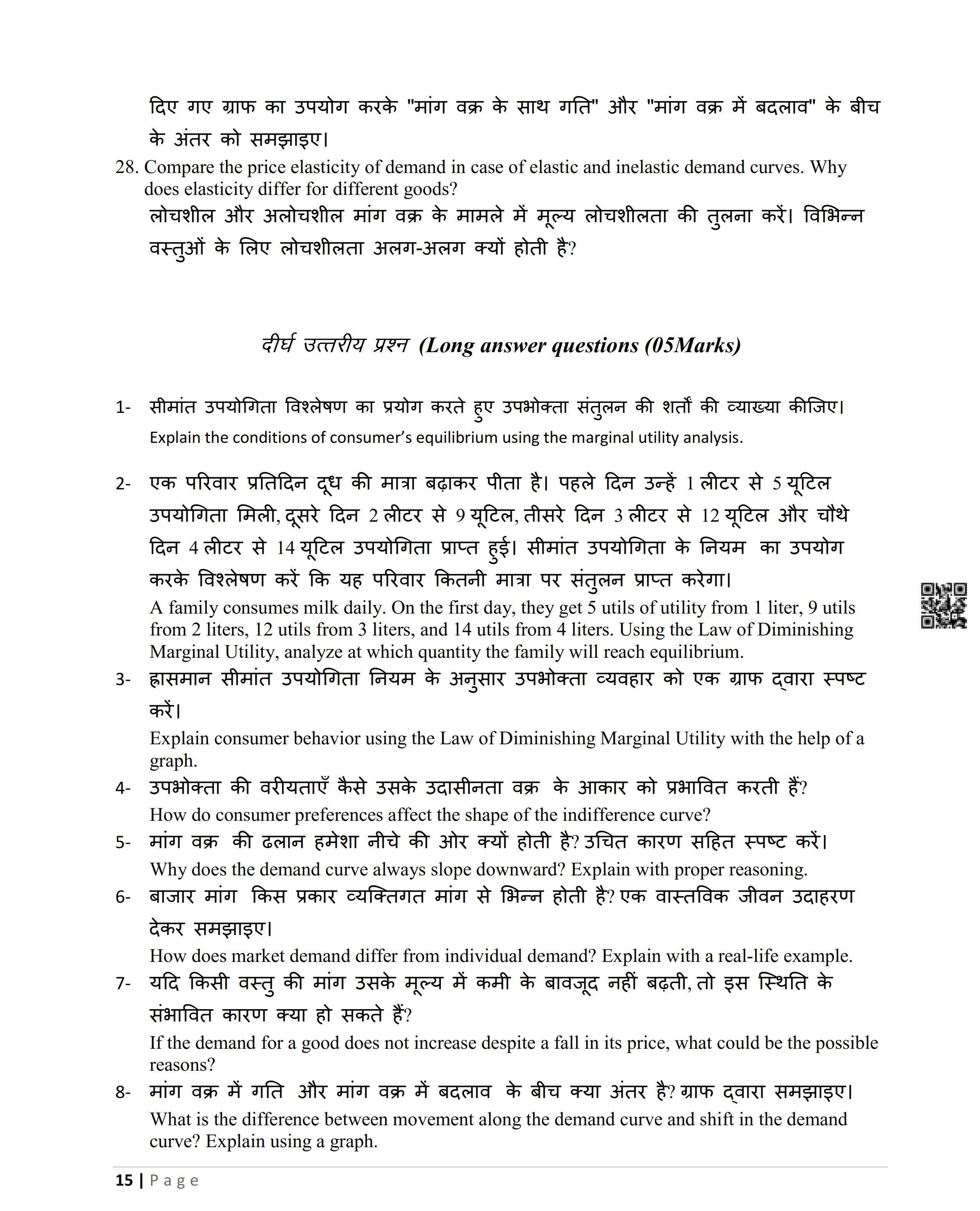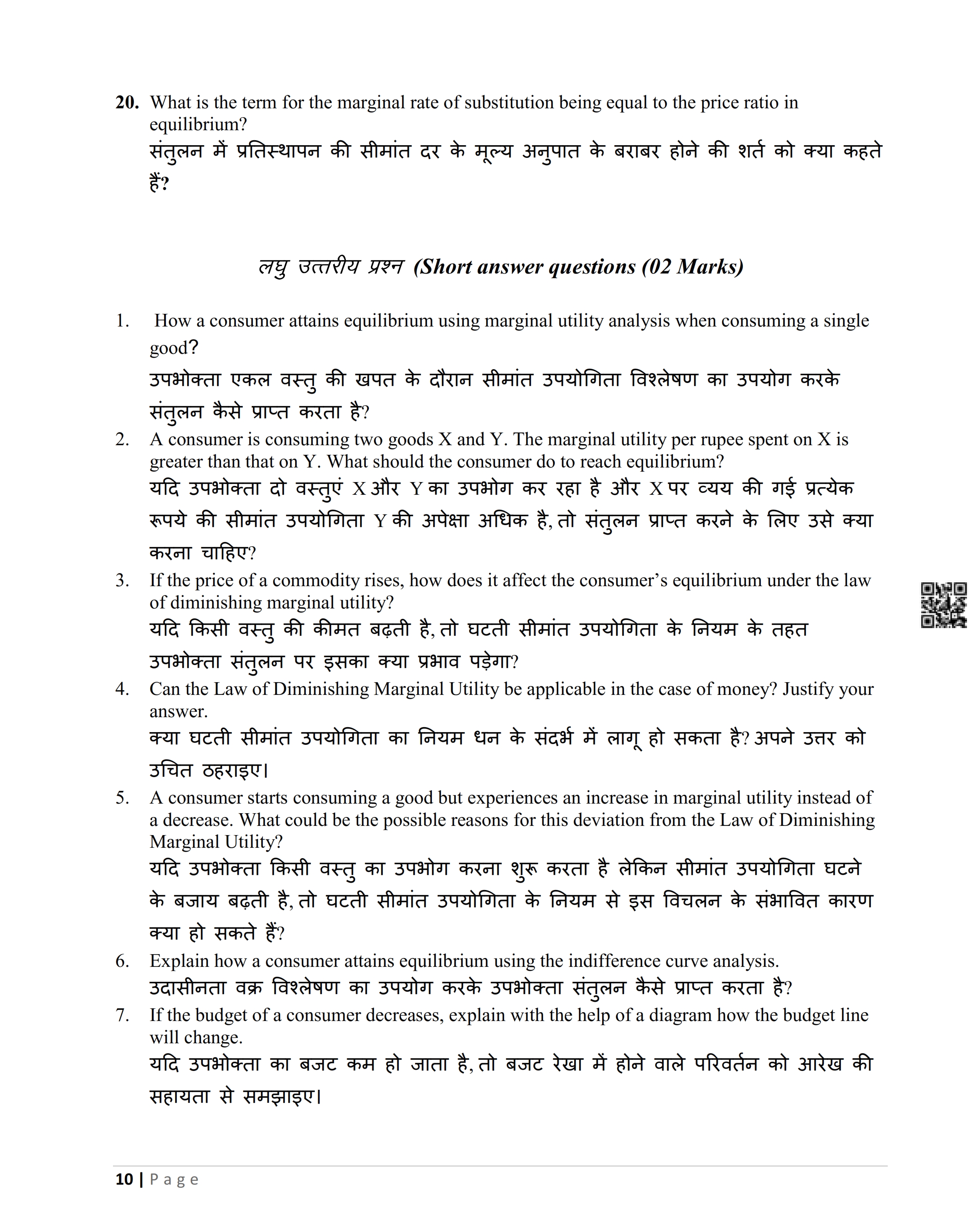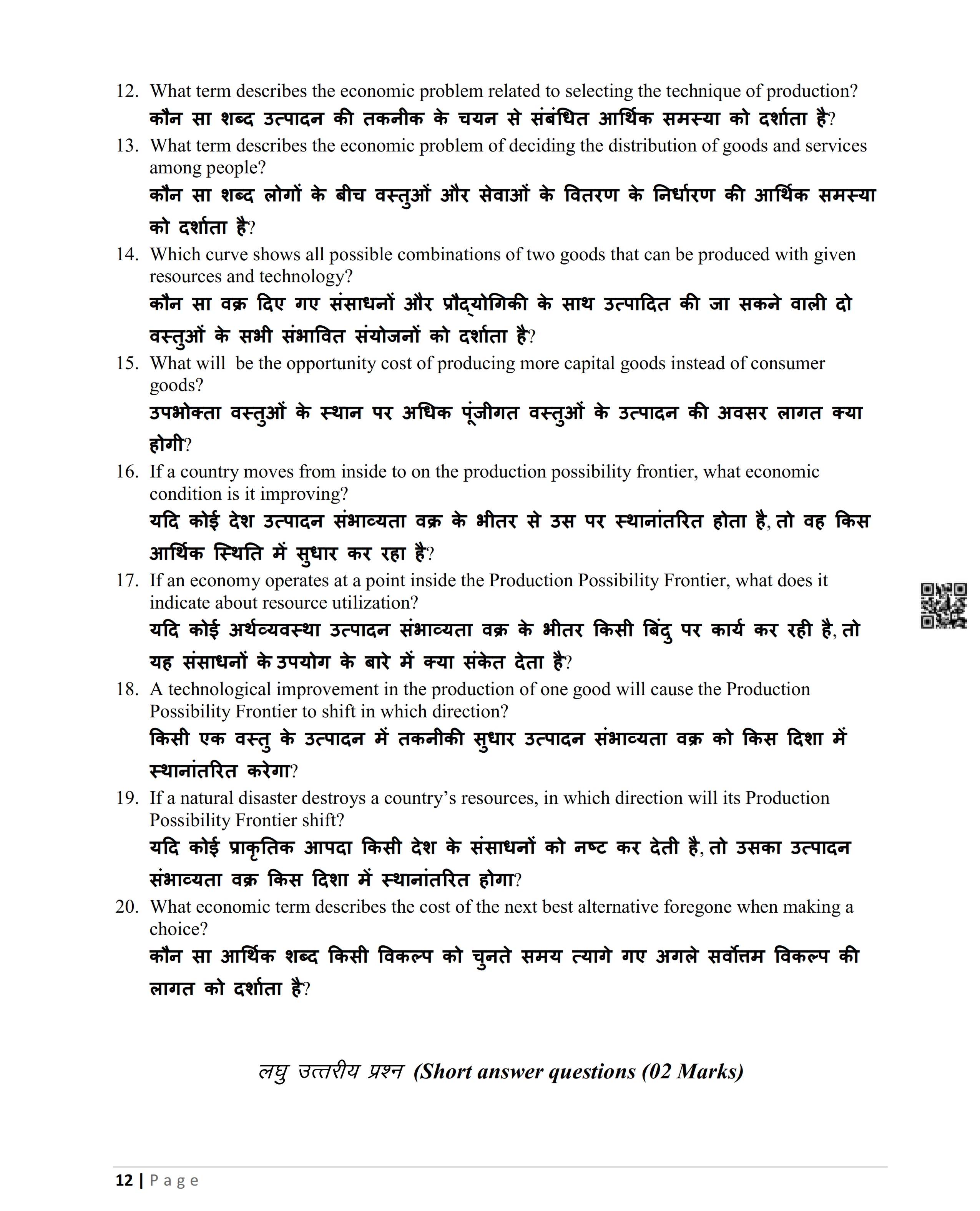 Uttarakhand Board Class 12 Question Bank Economics View Download