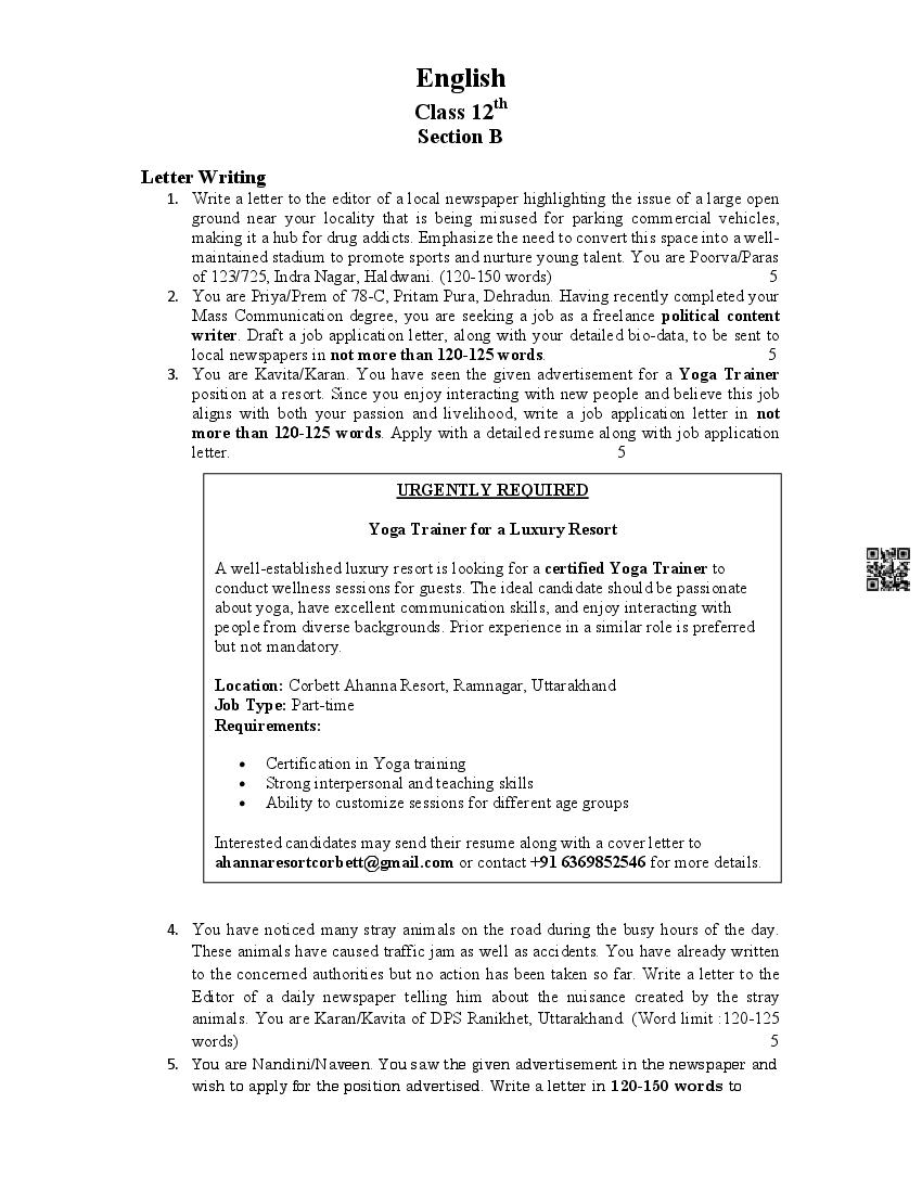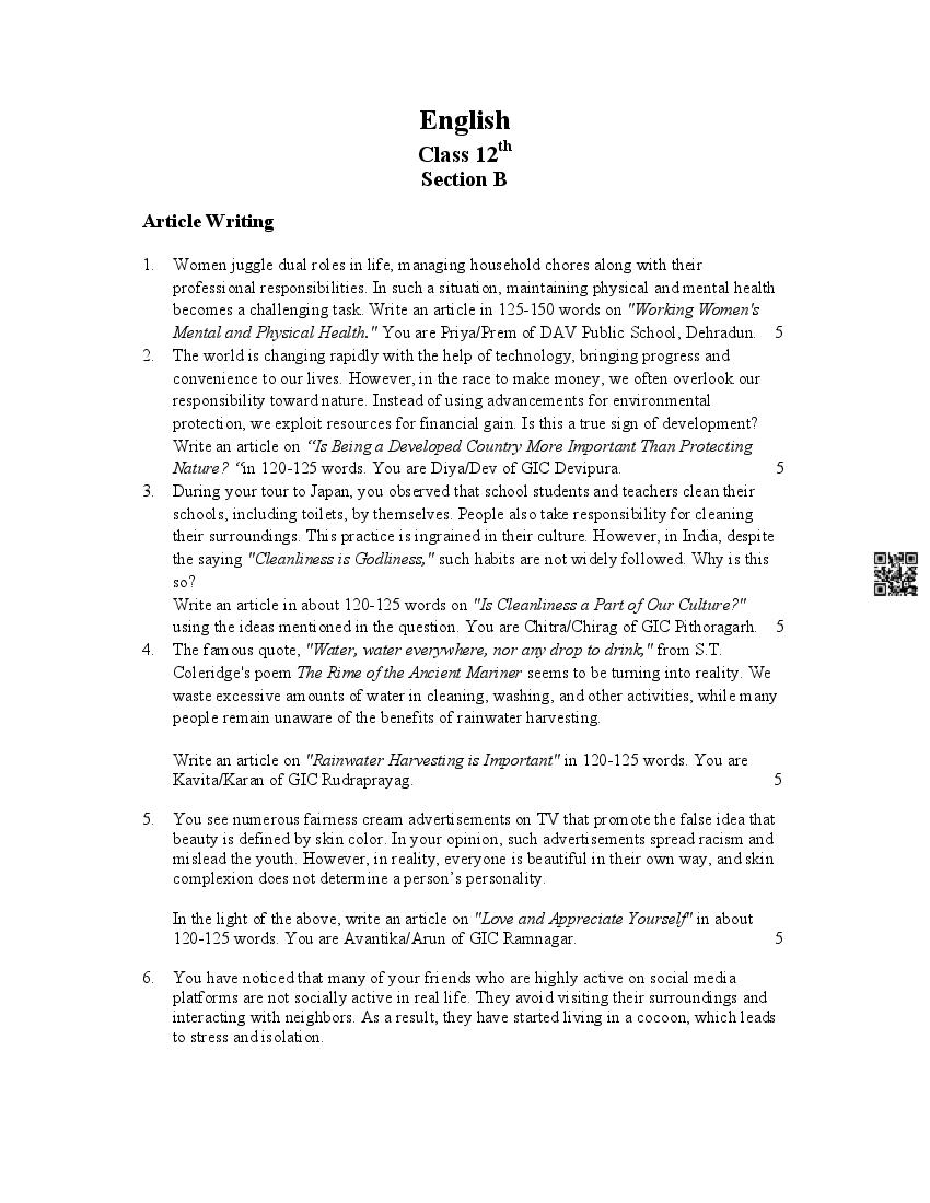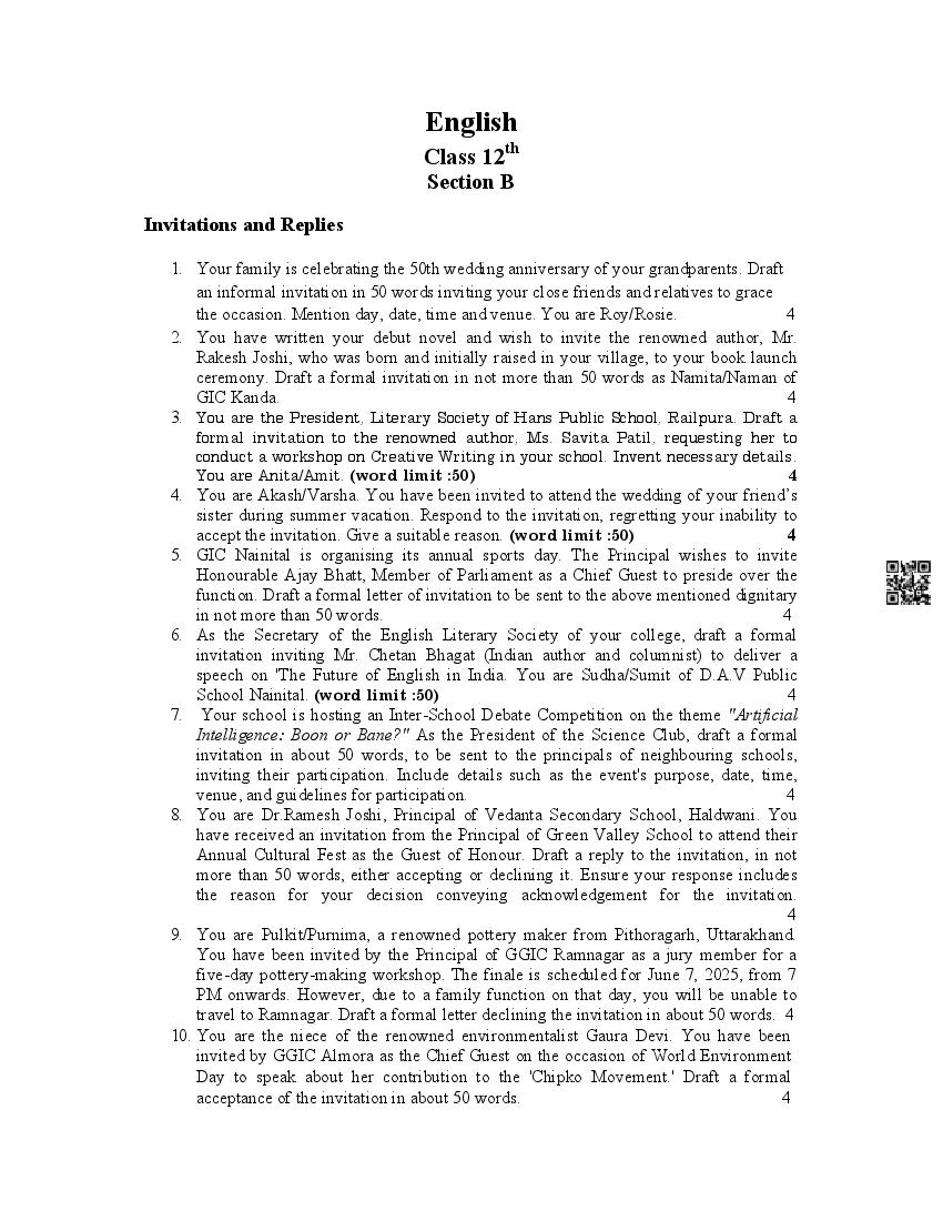 If you have any queries on Class 12 English Question Bank for Uttarakhand State Board, then please ask in comments below.