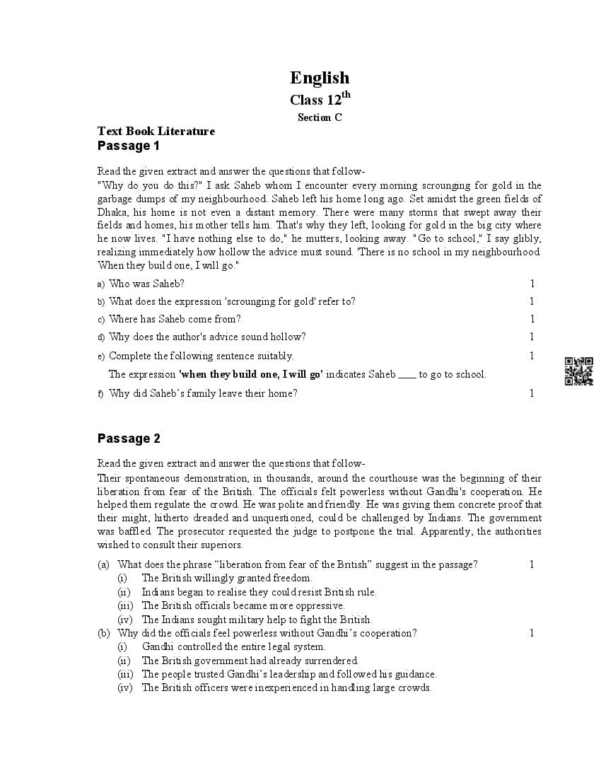Class 12 English Question Bank Download Link – Click Here to Download Important Questions PDF