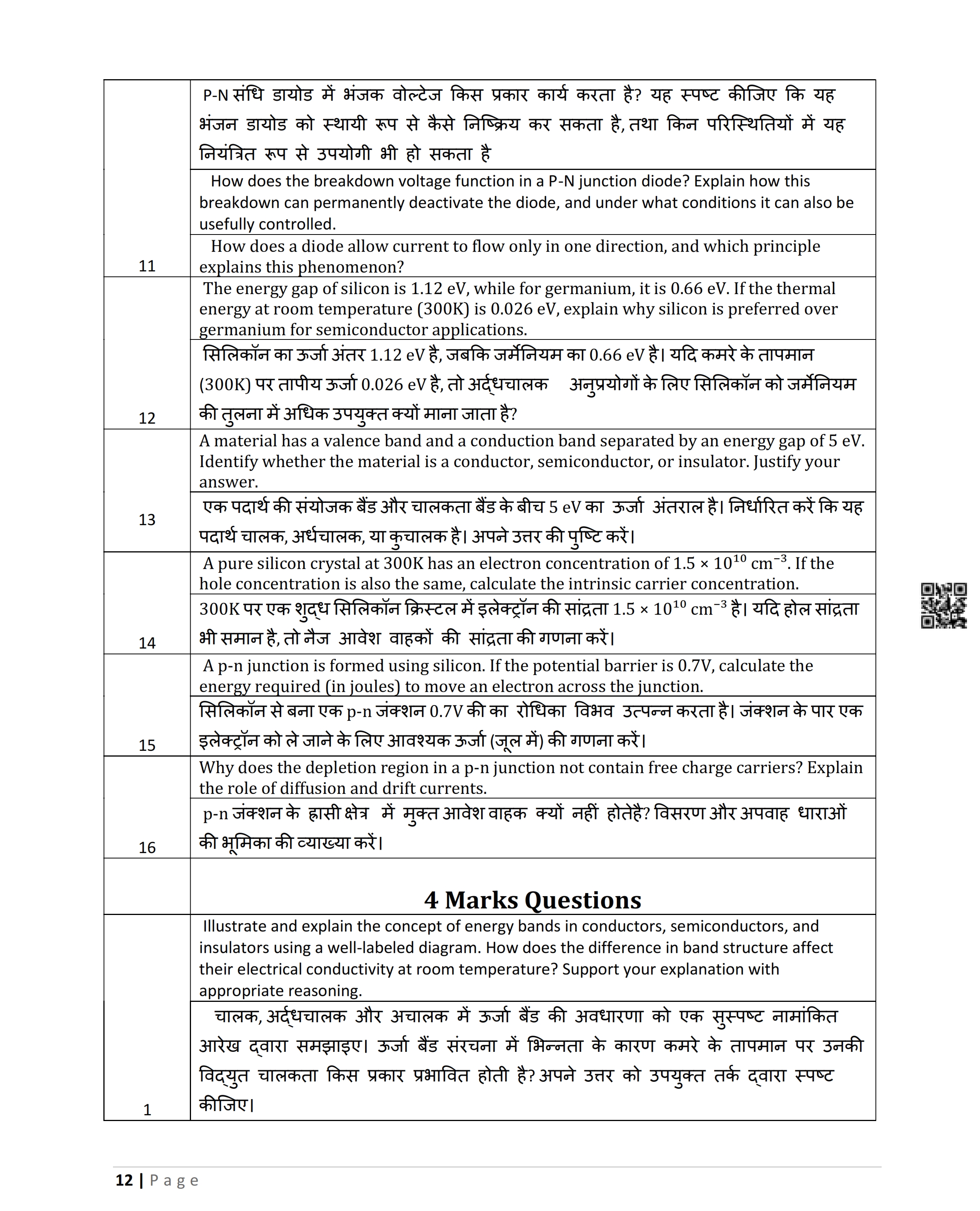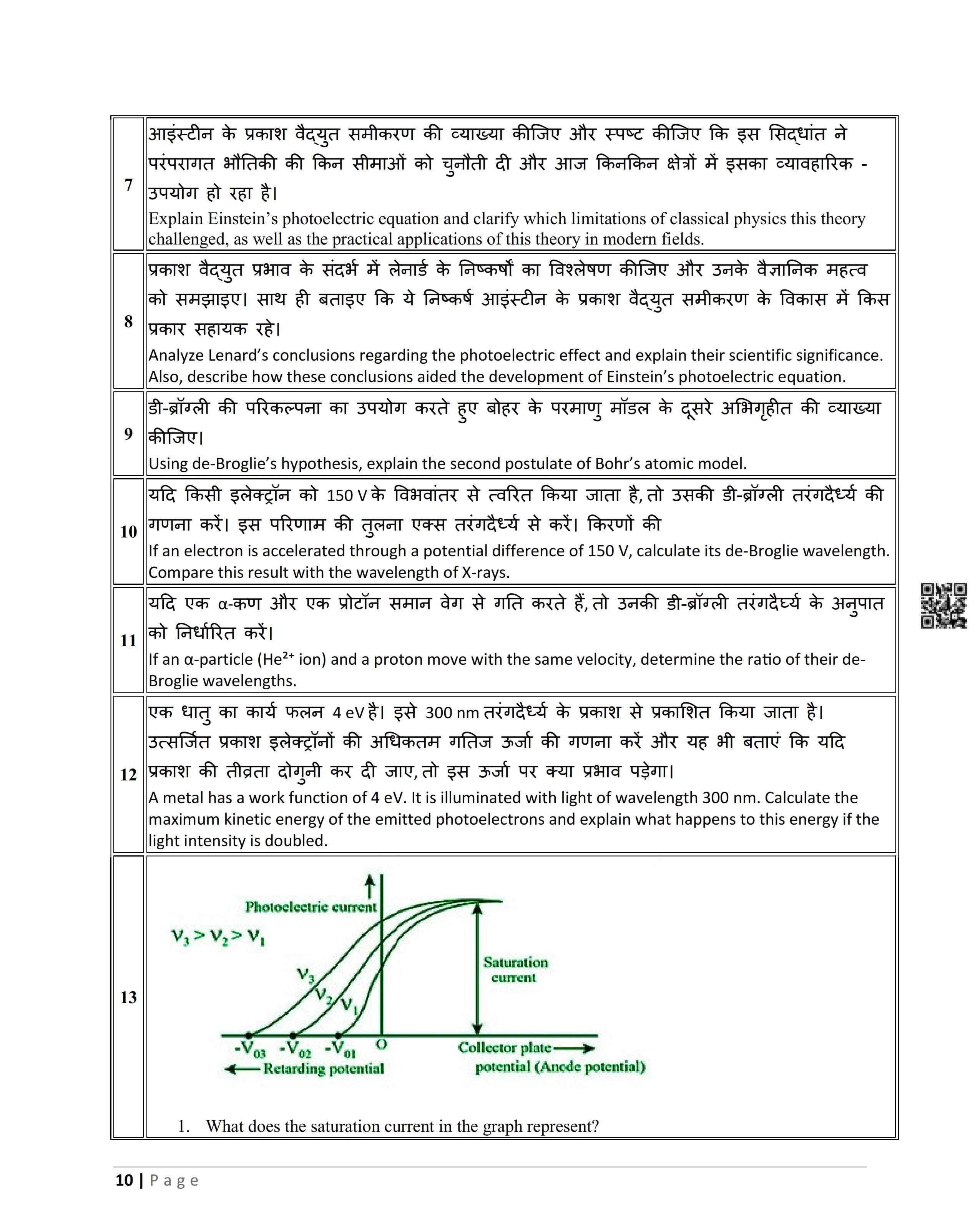 The question bank for Uttarakhand class 12 Physics is as follows.