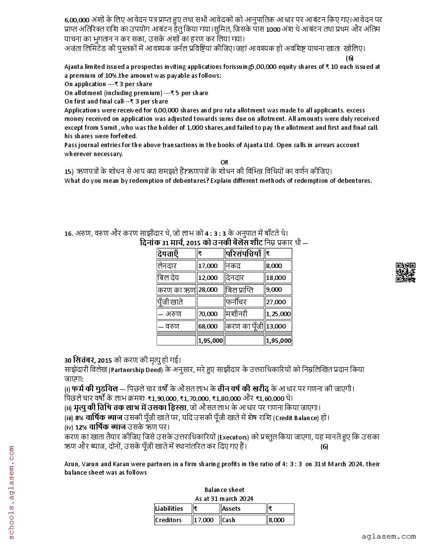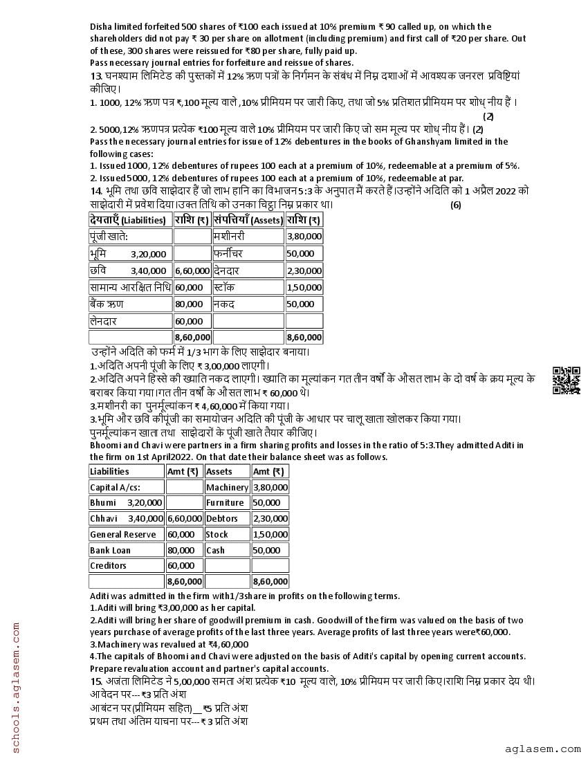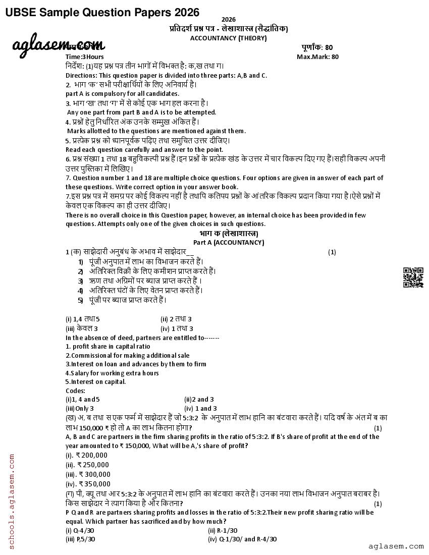 Uttarakhand Board Class 12th Accountancy Sample Paper 2026 has been released by UBSE. Therefore you can now download the UK Board 12th Model Paper for Accountancy PDF from here on aglasem. This UK Board class 12 model paper contains sample questions for Accountancy based on the latest syllabus. Moreover the class 12 sample paper has Accountancy questions in the same pattern as you will get in UK Board 12th Accountancy exam that will be held by Uttarakhand Board of School Education. Therefore solving this Accountancy model question paper increases your chances of getting 100% in UK Board exam.