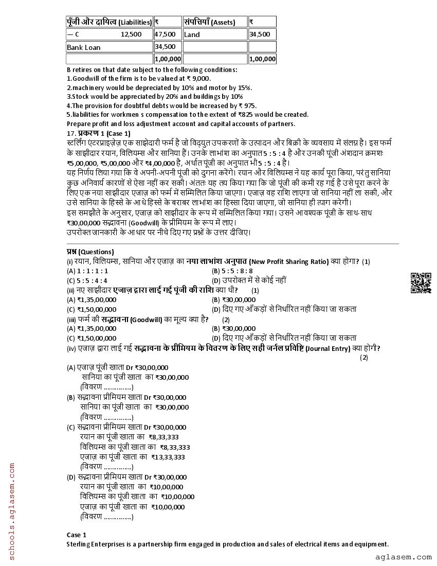 The UK Board Class 12 Sample Paper for Accountancy is as follows. Uttarakhand Board of School Education (UBSE) has published this with other UK board sample papers.