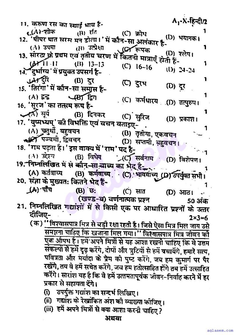 The UP Board Previous Year Question Paper for class 10th Hindi half yearly examination is as follows.
