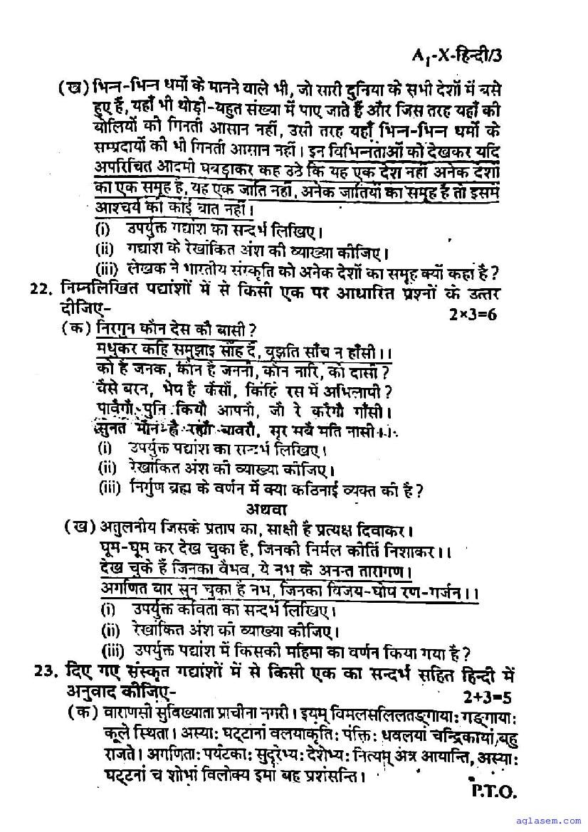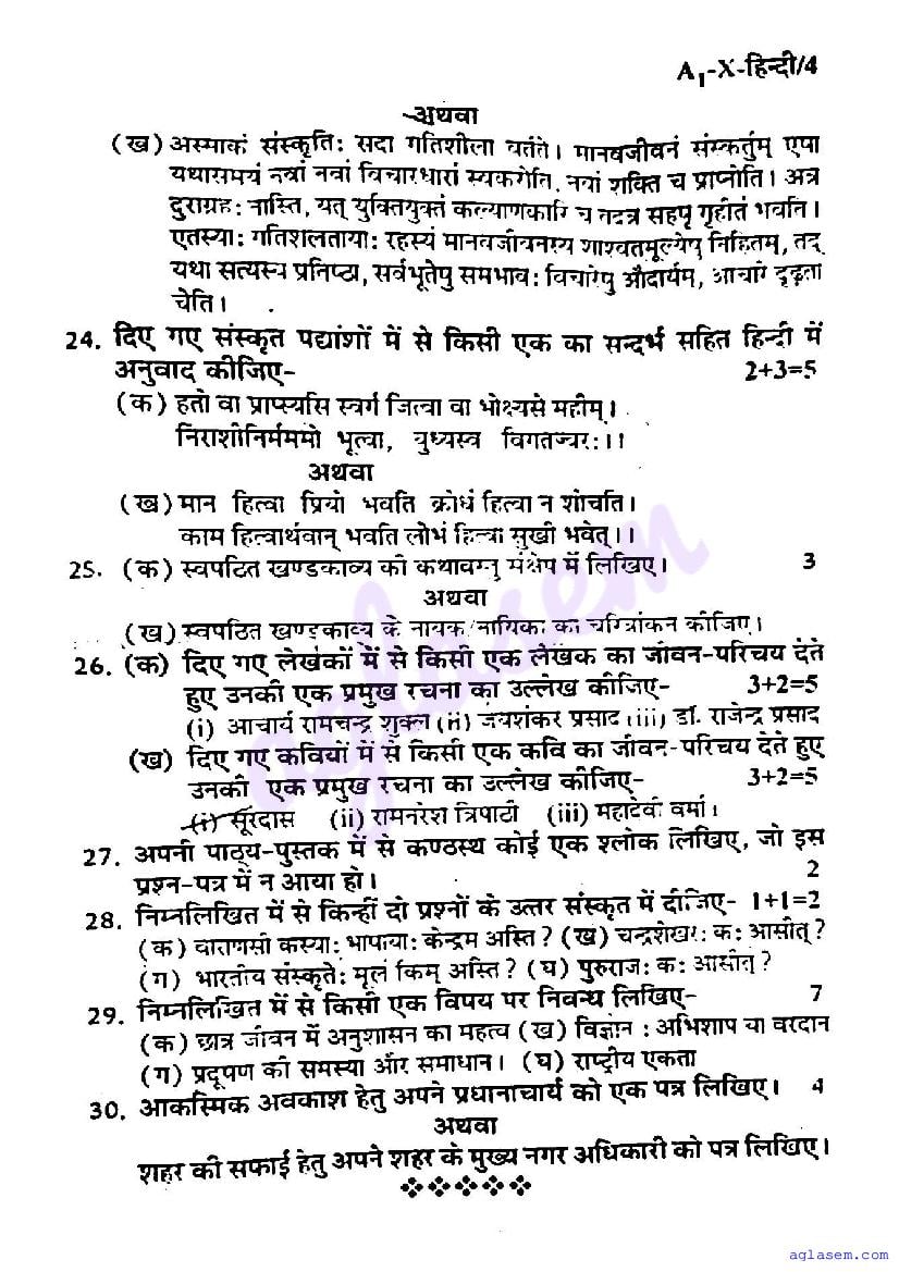 Study Material HereUP Board Previous Year Question Paper of Class 10 Hindi