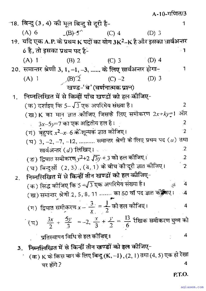 | Study Material Here | UP Board Previous Year Question Paper of Class 10 Maths |