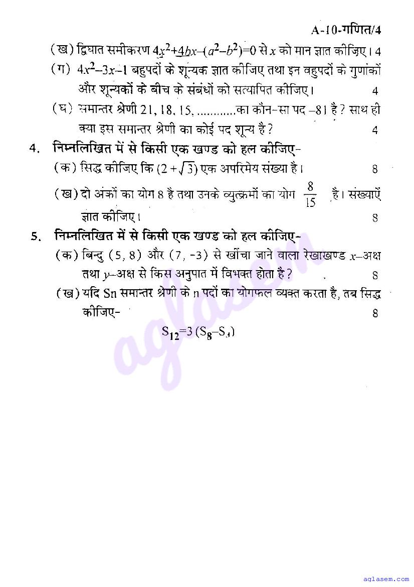 The UP Board Previous Year Question Paper for class 10th Maths half yearly examination is as follows.