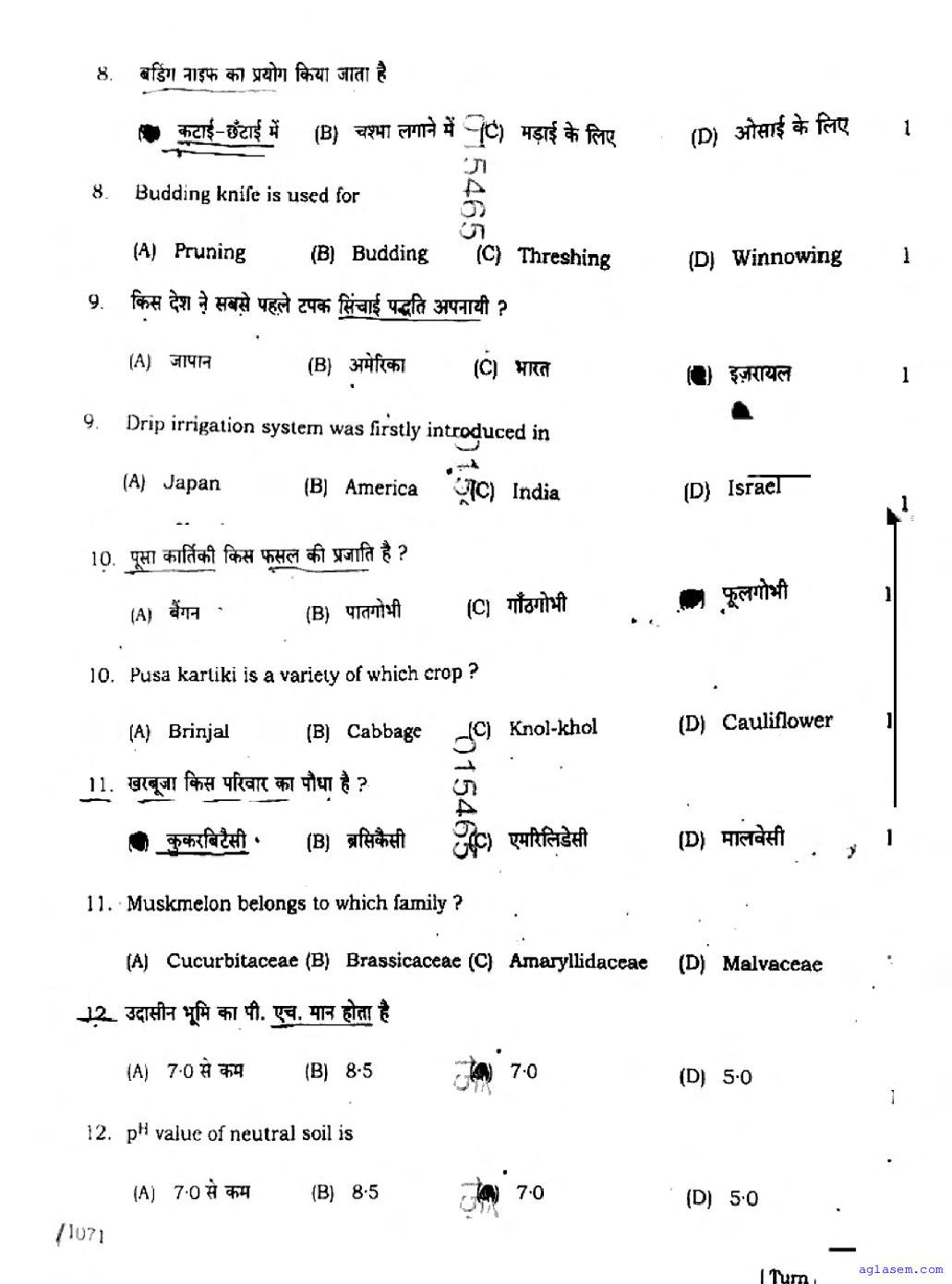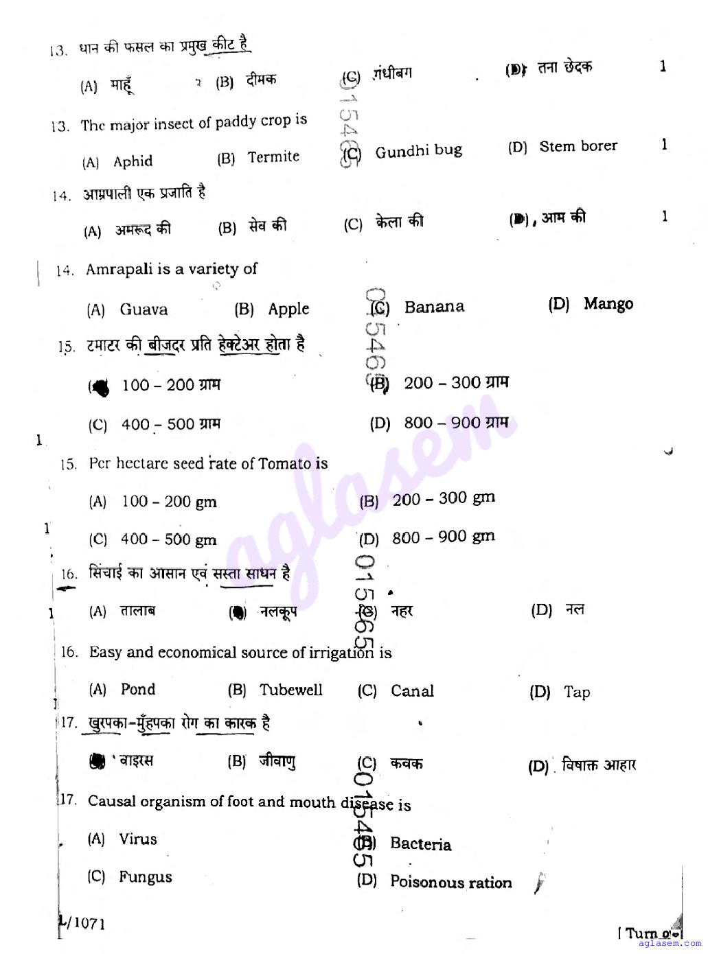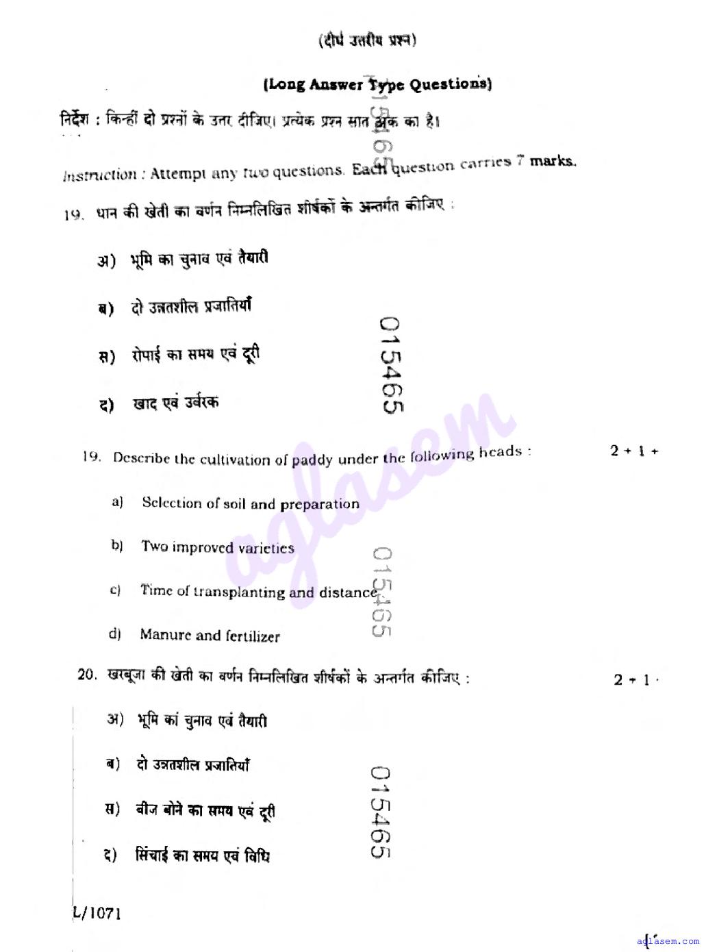 The latest available complete exam paper for Agriculture is as follows.
