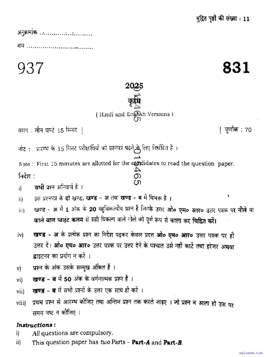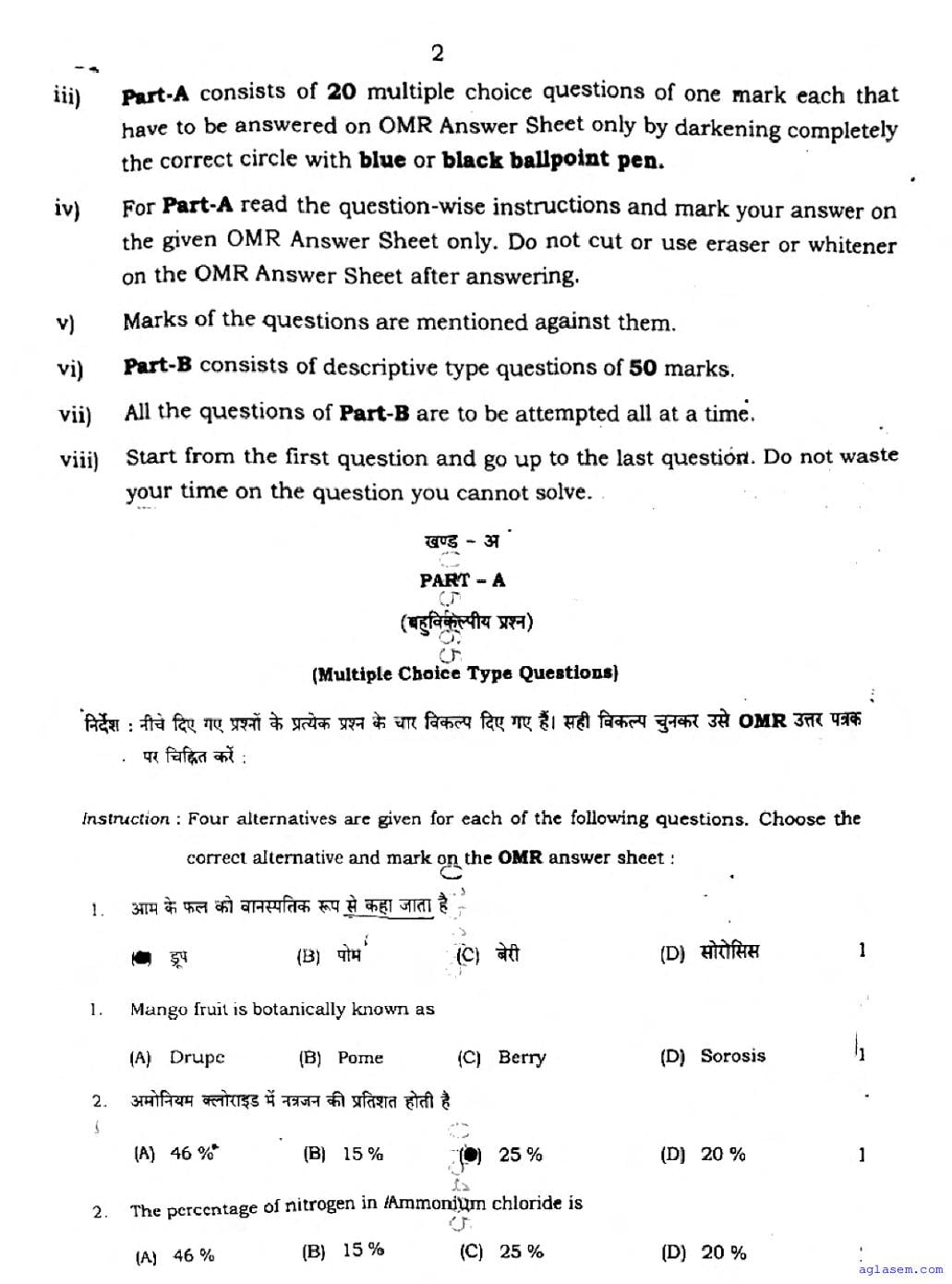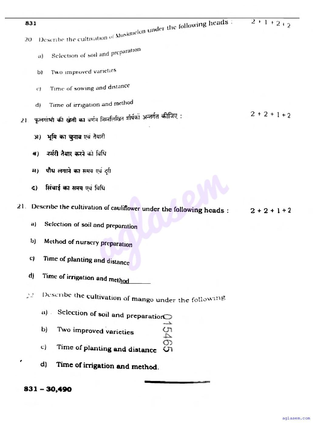 The latest available complete exam paper for Agriculture is as follows.