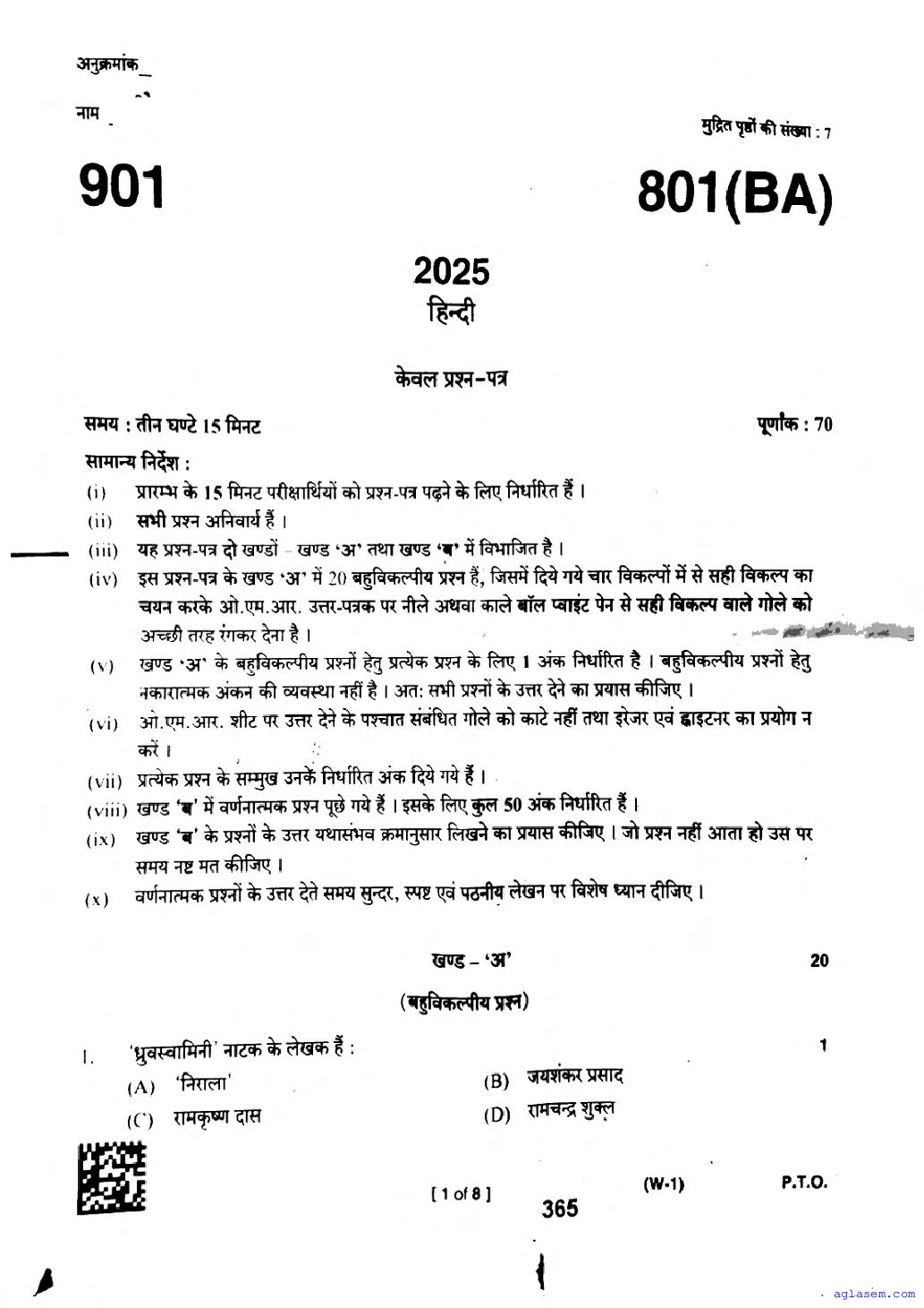 The latest available complete exam paper for Hindi is as follows.