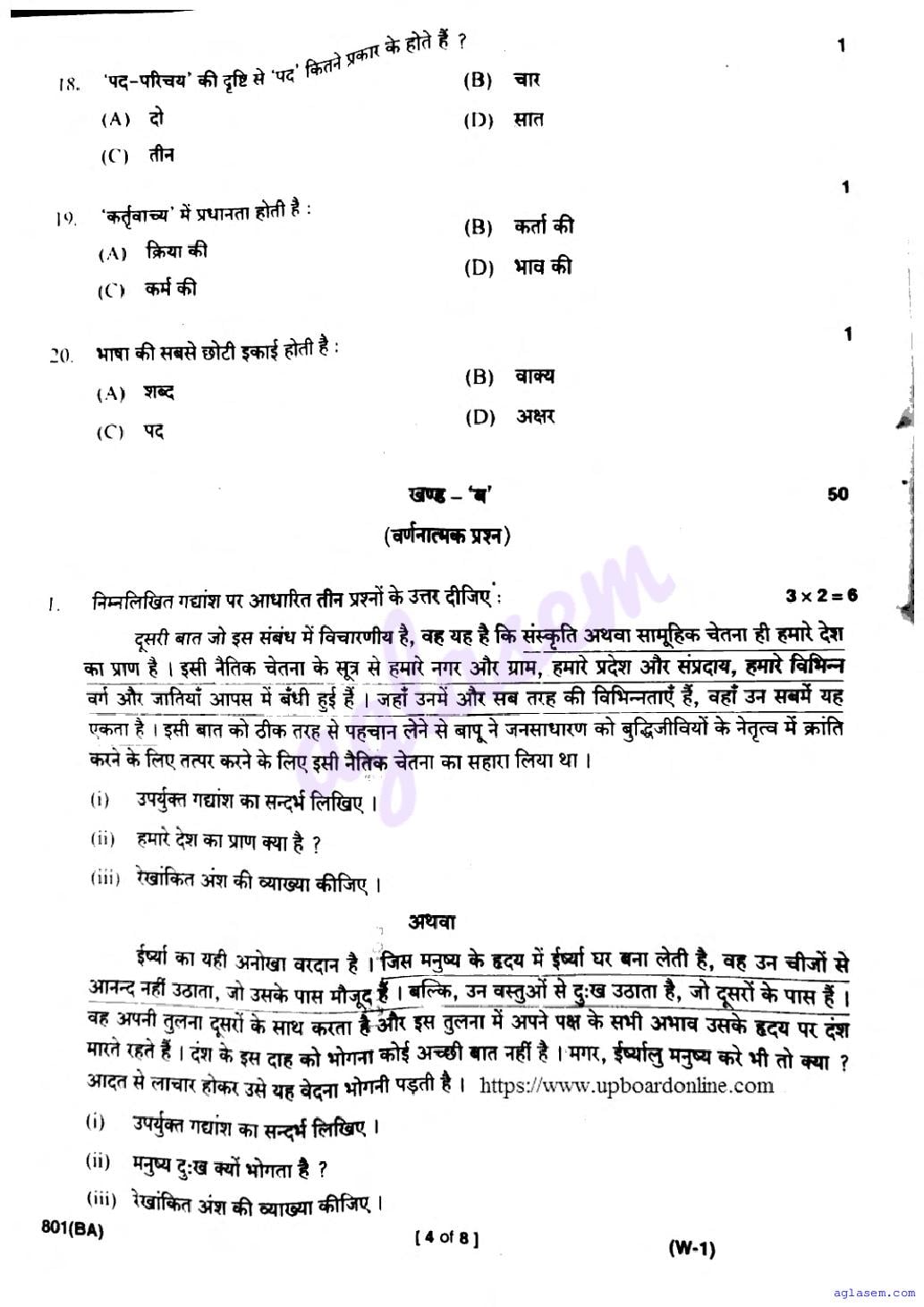 UP Board Class 10 Hindi Question Paper 2026 is published after exam. You can download the UP Board Class 10 Hindi Previous Year Question Paper PDF from here on aglasem to practice for your upcoming paper. It contains actual questions asked in the past year Hindi exam. This UP Board Class 10 Question Paper is for the Hindi subject and helps you understand exam difficulty level, types of questions to expect in exams. Therefore by practising the Hindi question paper, you can improve your preparation for the 10th standard exams and aim to score full marks in Hindi.