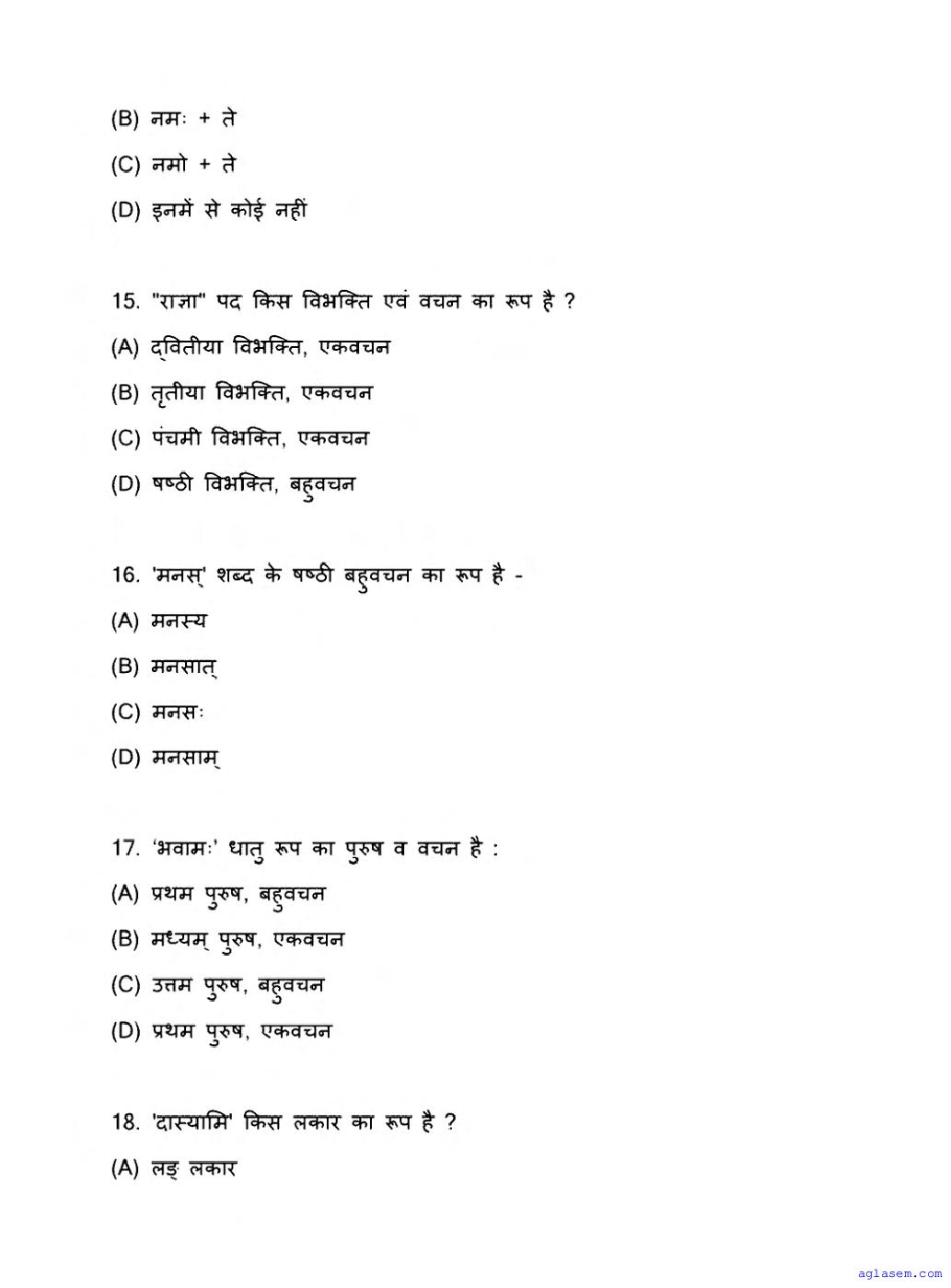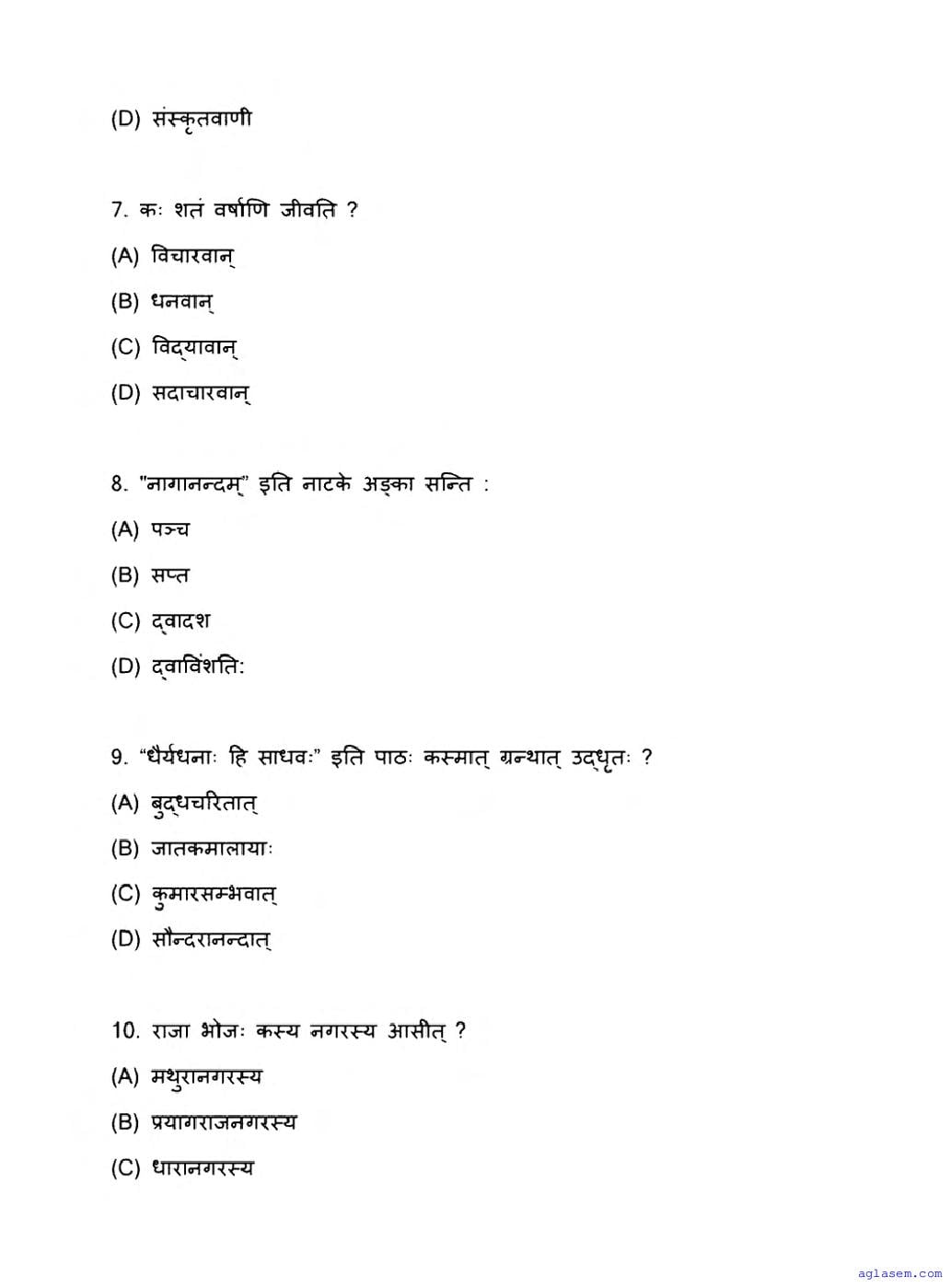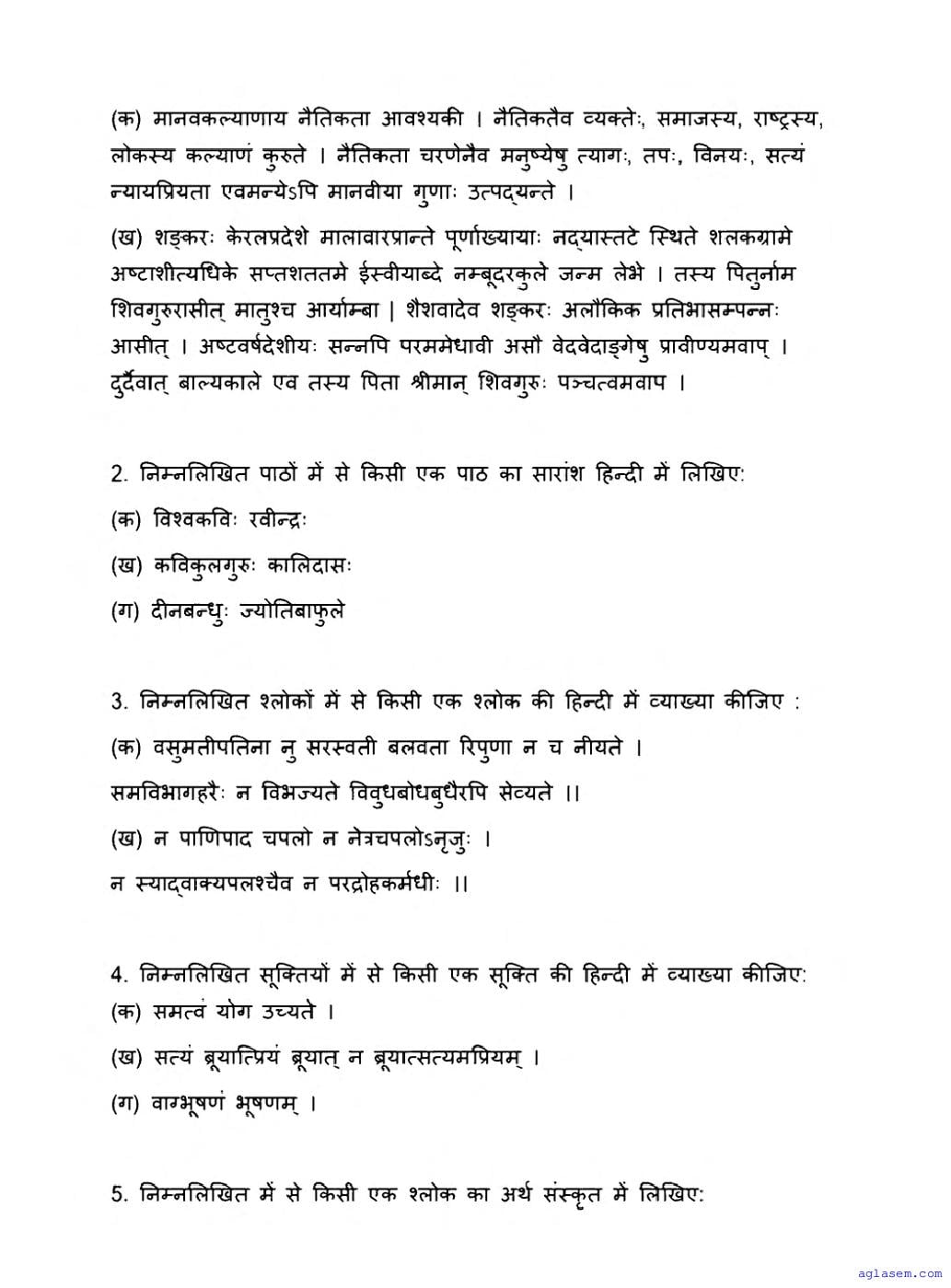 The latest available complete exam paper for Sanskrit is as follows.