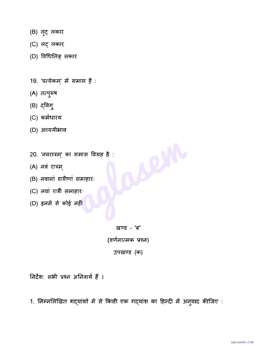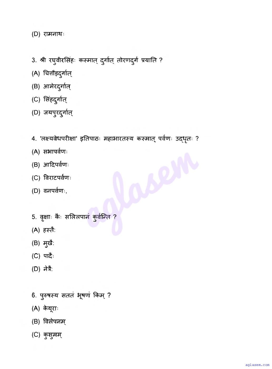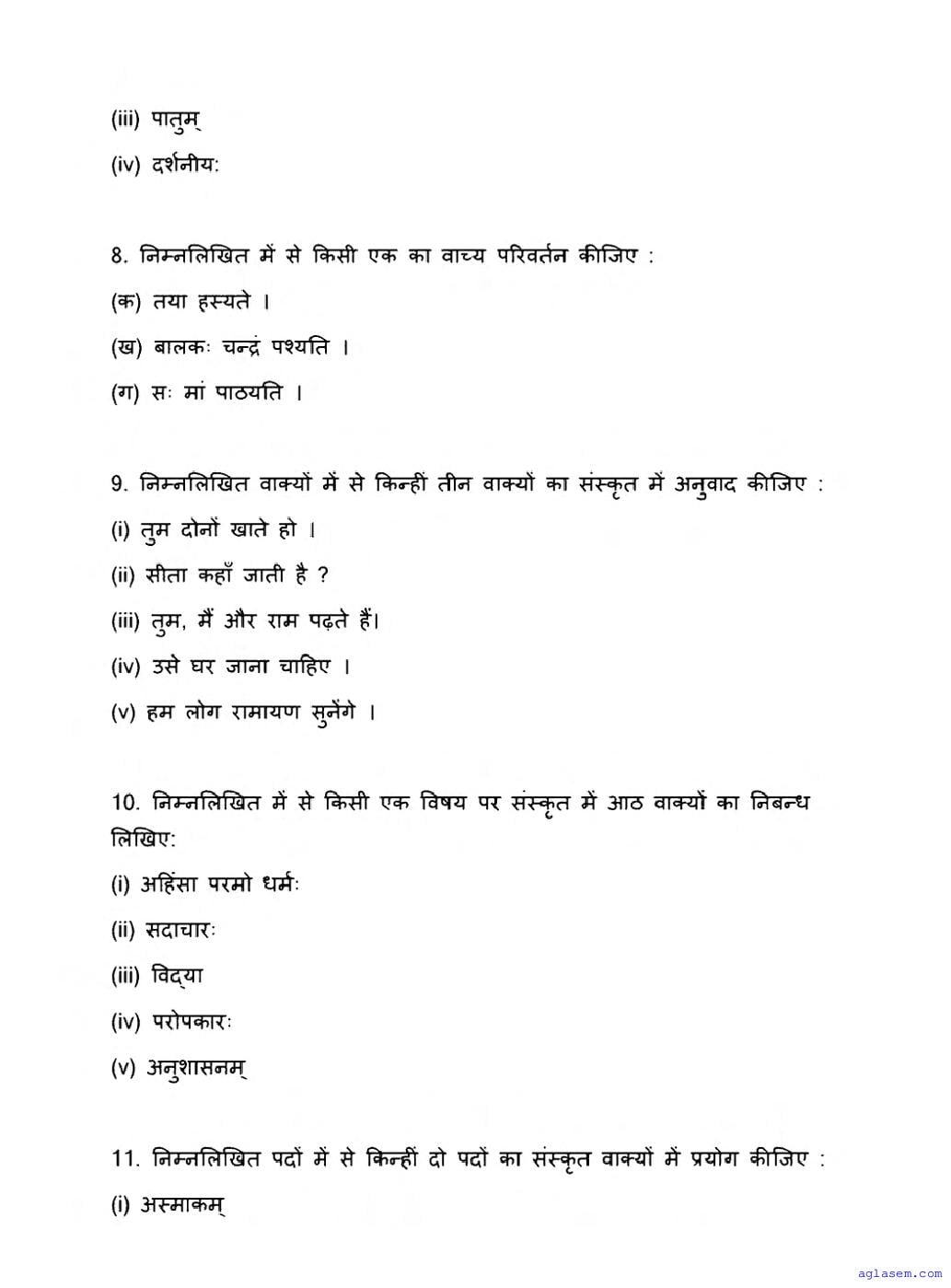 The latest available complete exam paper for Sanskrit is as follows.