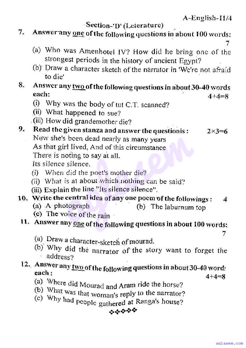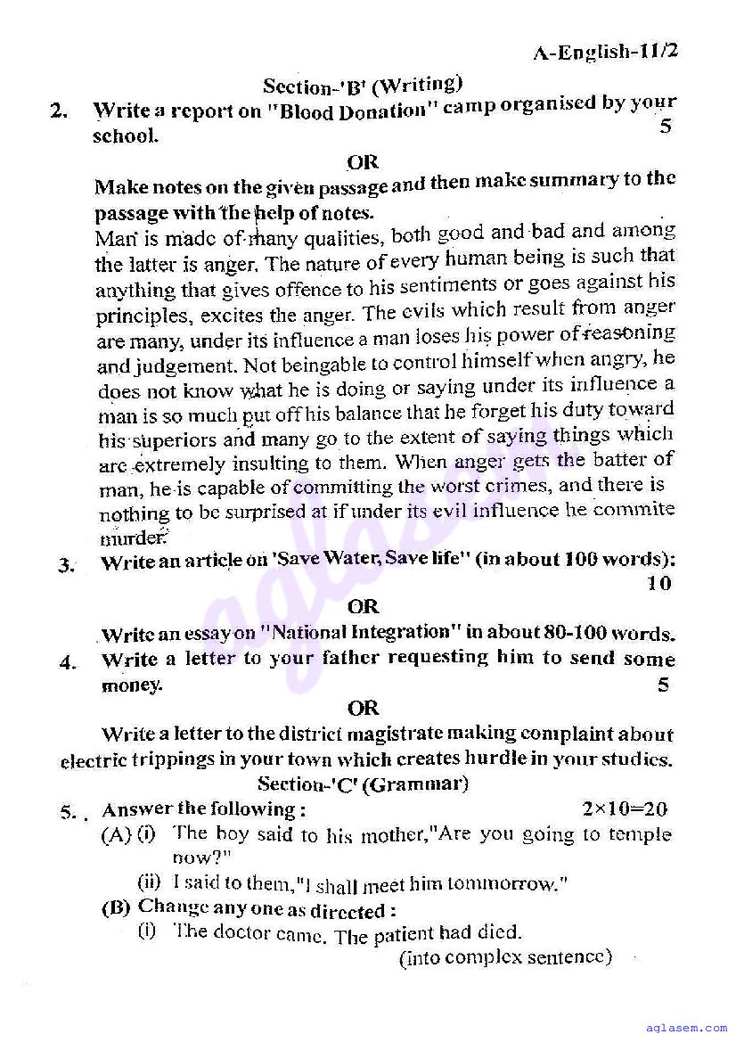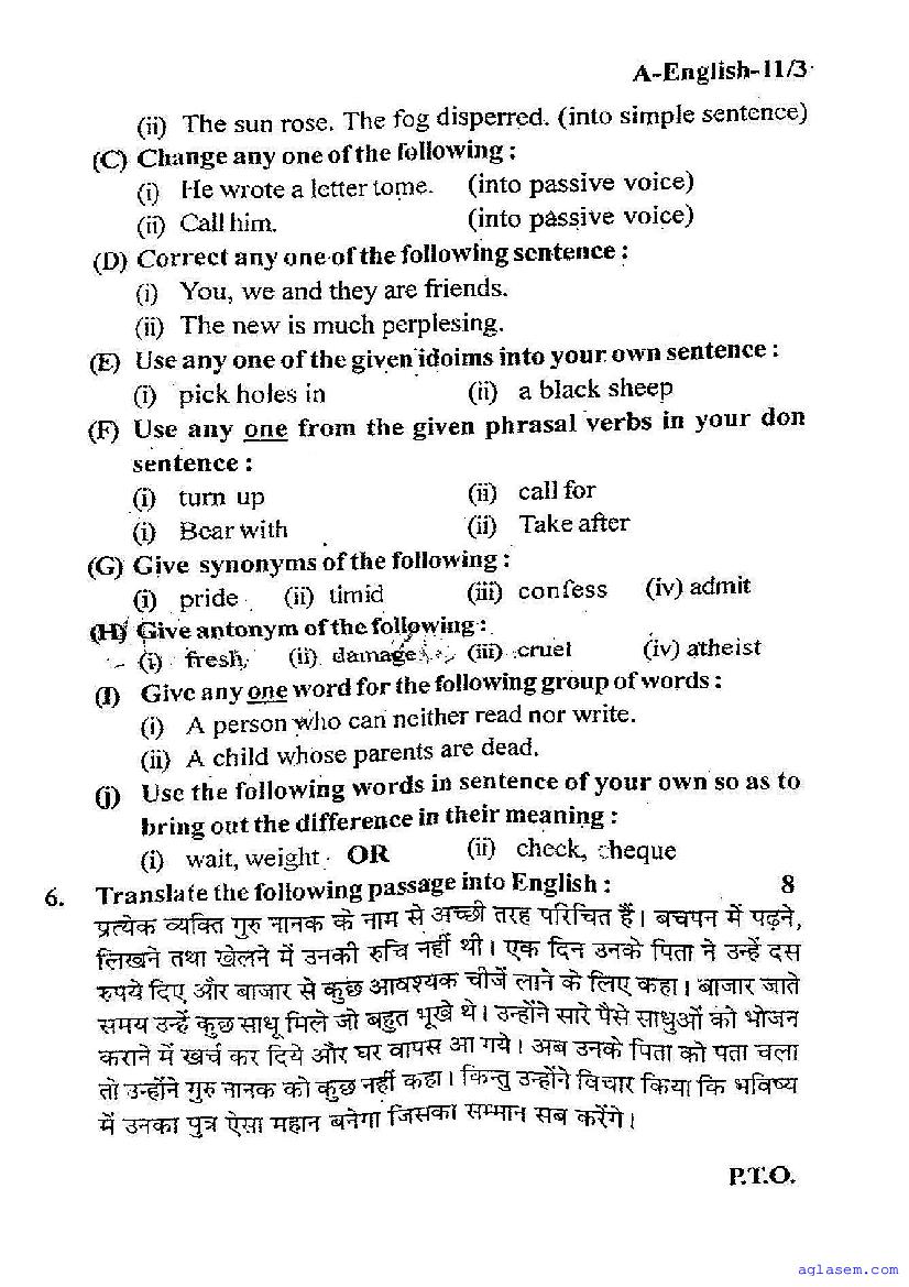 | Study Material Here | UP Board Previous Year Question Paper of Class 11 English |