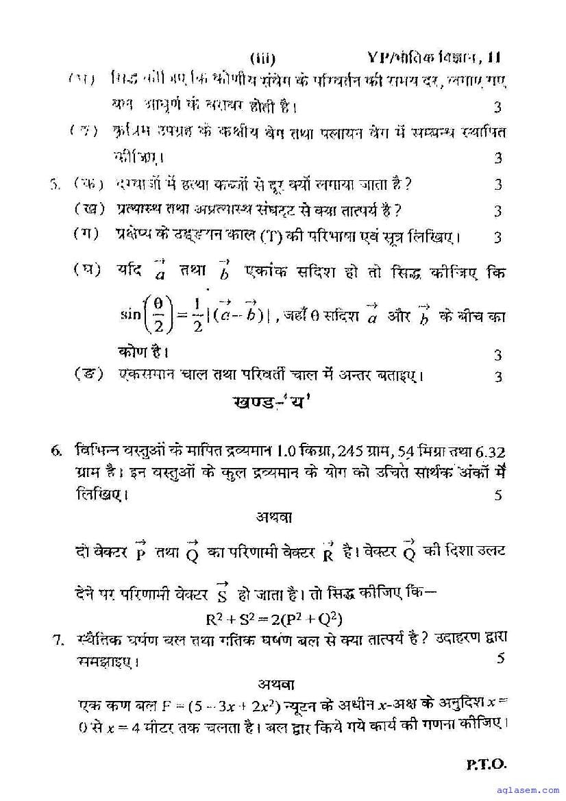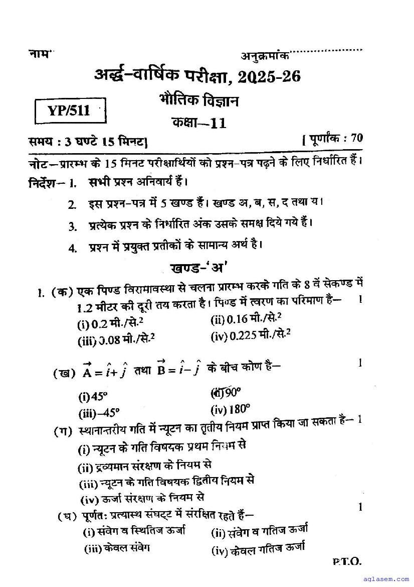 UP Board Class 11 Physics Half-Yearly Question Paper 2026 is published here after mid exam. You can download the UP Board Class 11 Physics Previous Year Half Yearly Question Paper PDF from here on aglasem to practice for your upcoming paper. It contains actual questions asked in the past year half yearly Physics exam. This UP Board Class 11 Question Paper for Half yearly examination is for the Physics subject and helps you understand exam difficulty level, types of questions to expect in exams. Therefore by practicing the Physics half yearly exam question paper, you can improve your preparation for the 11th standard exams and aim to score full marks in Physics.