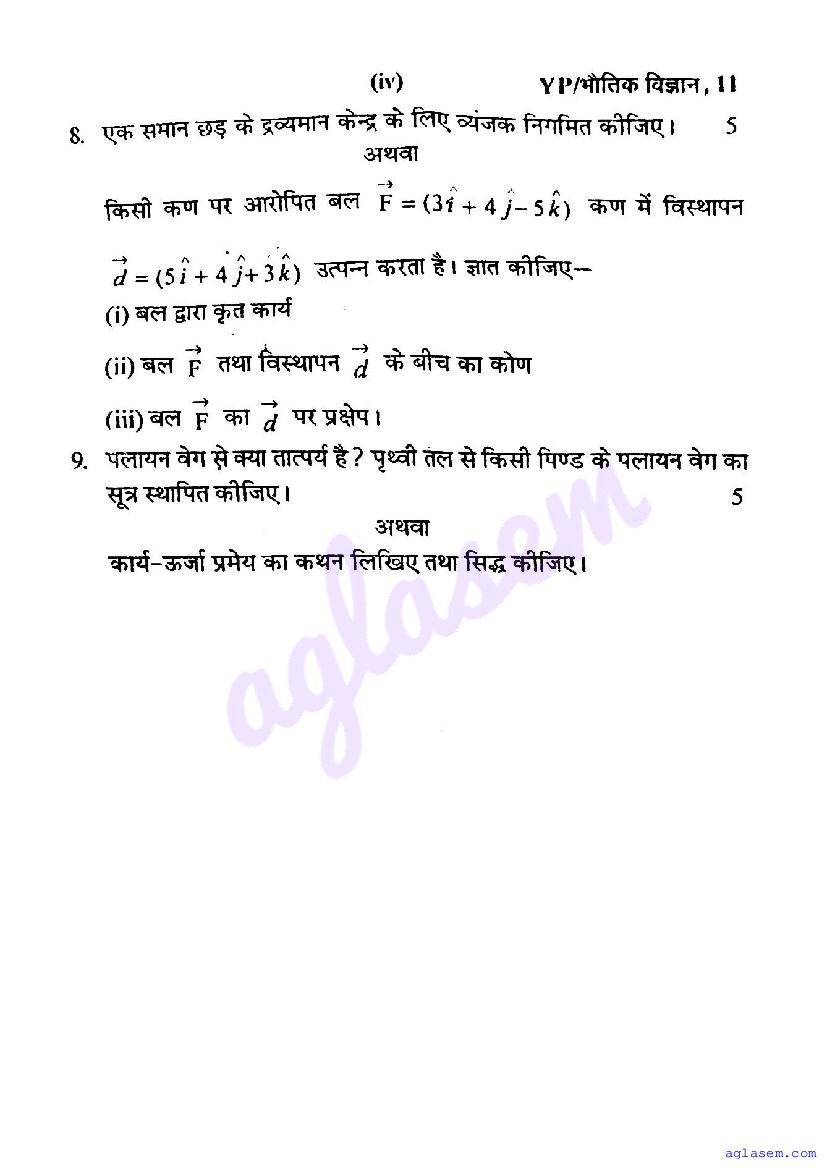 Study Material HereUP Board Previous Year Question Paper of Class 11 Physics