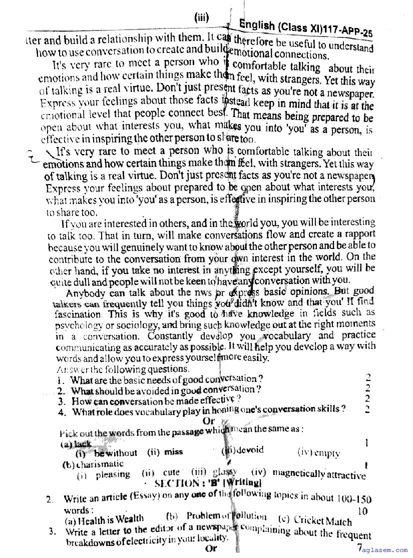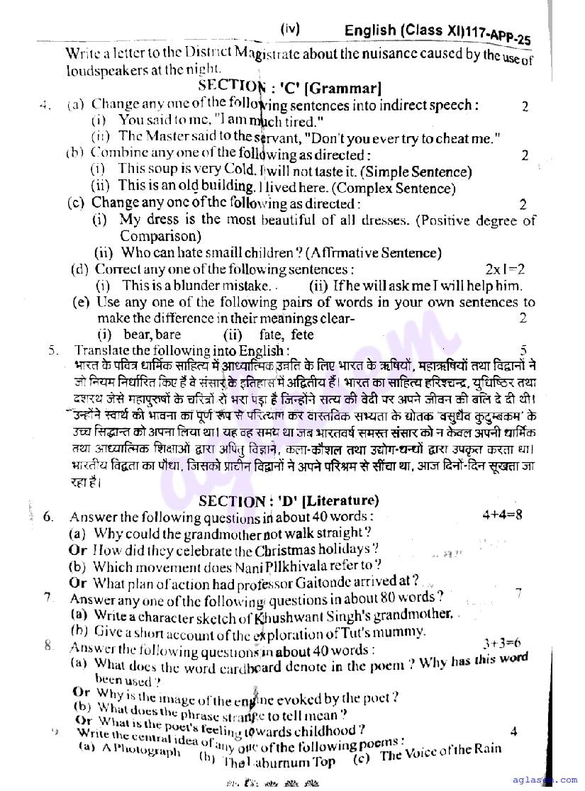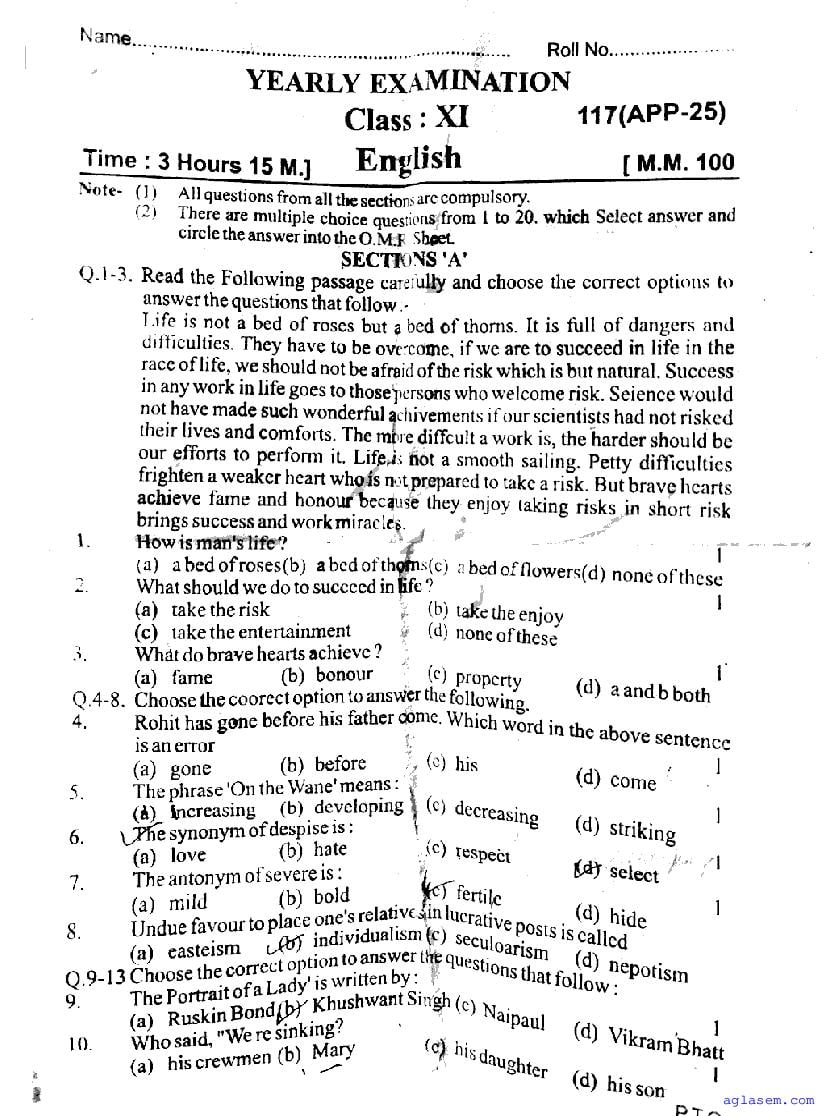 | Study Material Here | UP Board Previous Year Question Paper of Class 11 English |
