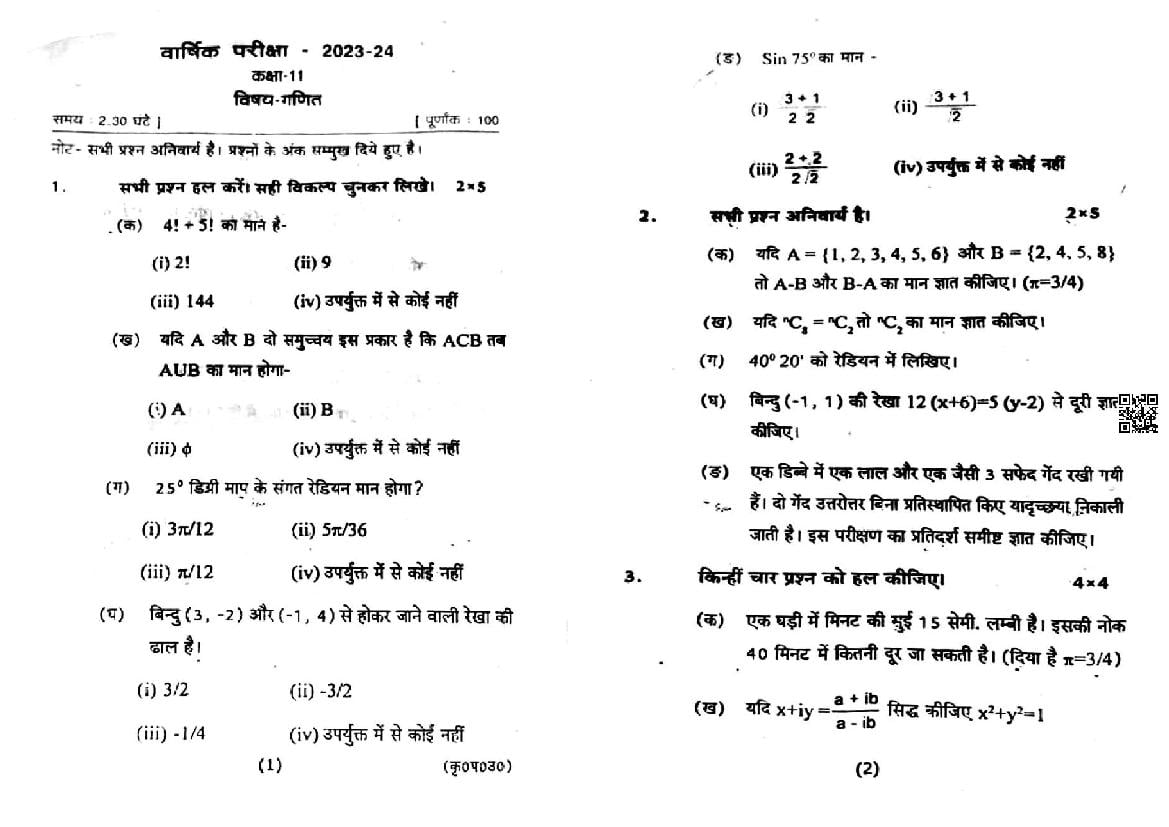 UP Board Class 11 Maths Question Paper 2024 PDF