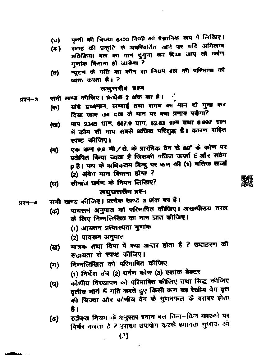 | Study Material Here | UP Board Previous Year Question Paper of Class 11 Physics |