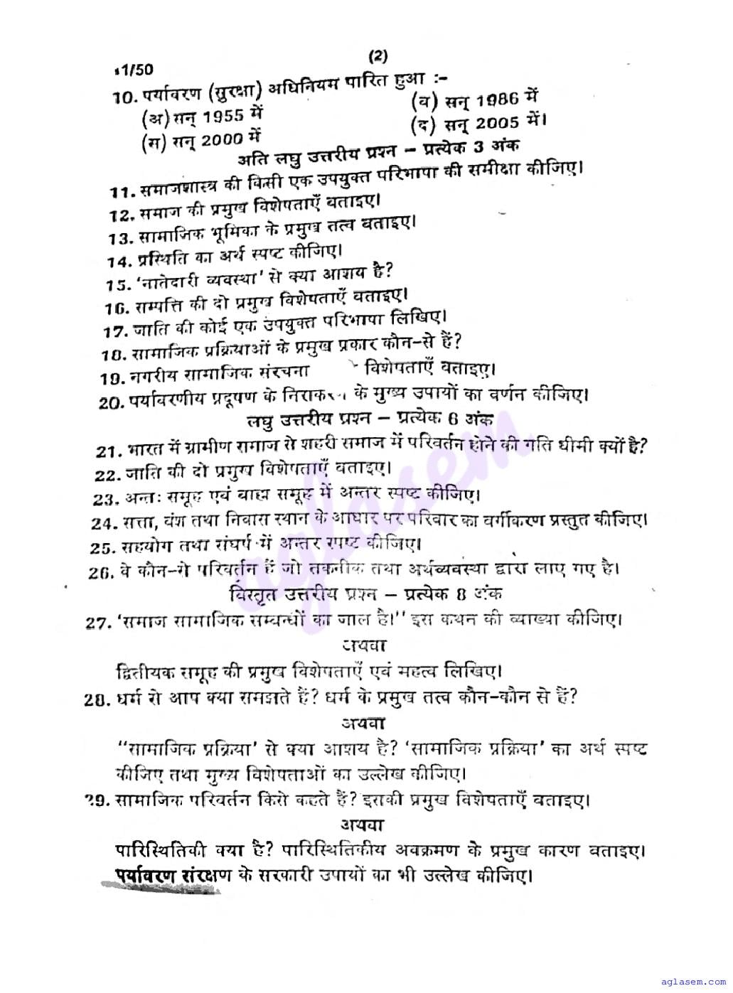 UP Board Class 11 Sociology Question Paper 2026 is published after exam. You can download the UP Board Class 11 Sociology Previous Year Question Paper PDF from here on aglasem to practice for your upcoming paper. It contains actual questions asked in the past year Sociology exam. This UP Board Class 11 Question Paper is for the Sociology subject and helps you understand exam difficulty level, types of questions to expect in exams. Therefore by practising the Sociology question paper, you can improve your preparation for the 11th standard exams and aim to score full marks in Sociology.