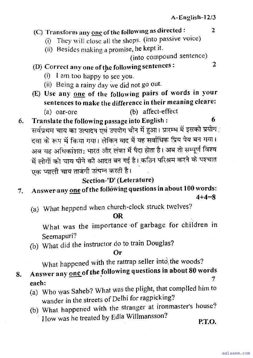 | Study Material Here | UP Board Previous Year Question Paper of Class 12 English |