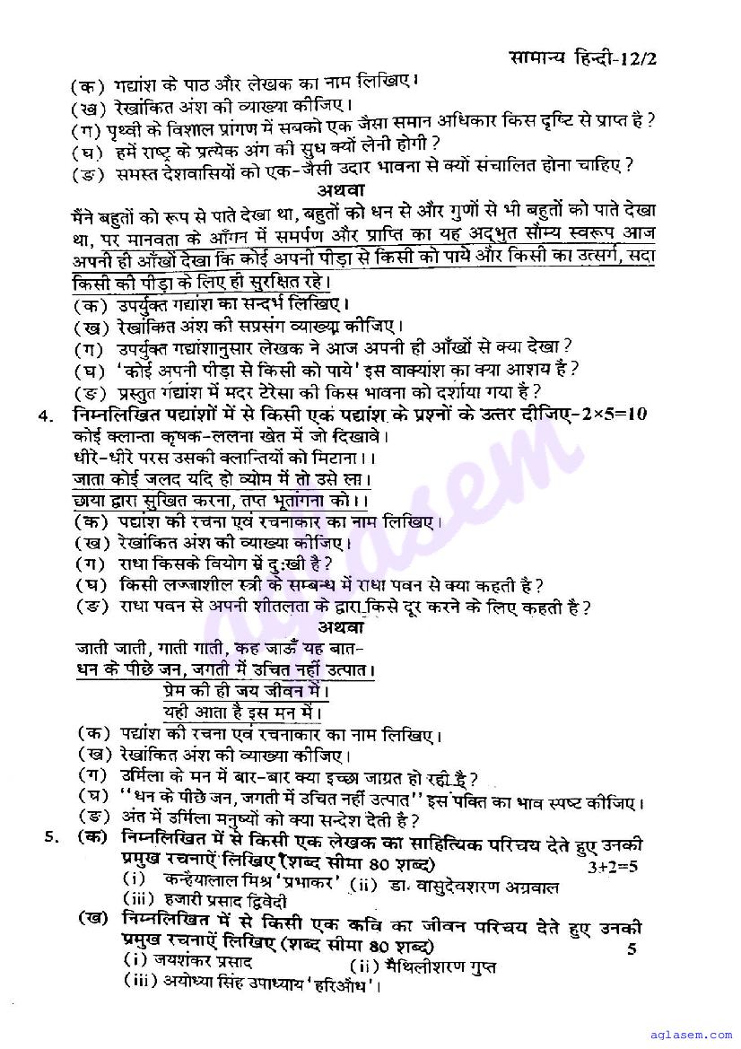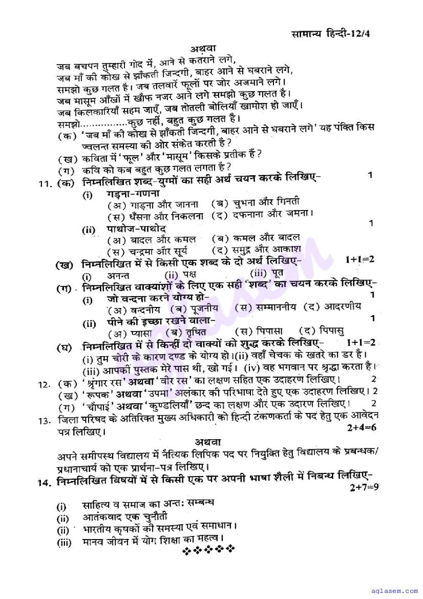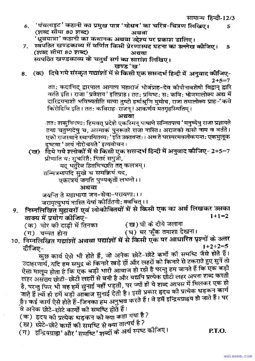 | Study Material Here | UP Board Previous Year Question Paper of Class 12 Hindi |