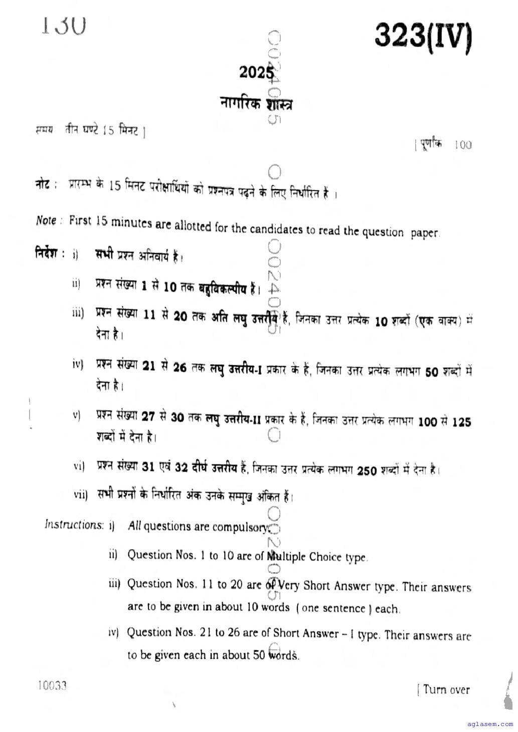 UP Board Class 12 Civics Question Paper 2026 is published after exam. You can download the UP Board Class 12 Civics Previous Year Question Paper PDF from here on aglasem to practice for your upcoming paper. It contains actual questions asked in the past year Civics exam. This UP Board Class 12 Question Paper is for the Civics subject and helps you understand exam difficulty level, types of questions to expect in exams. Therefore by practising the Civics question paper, you can improve your preparation for the 12th standard exams and aim to score full marks in Civics.