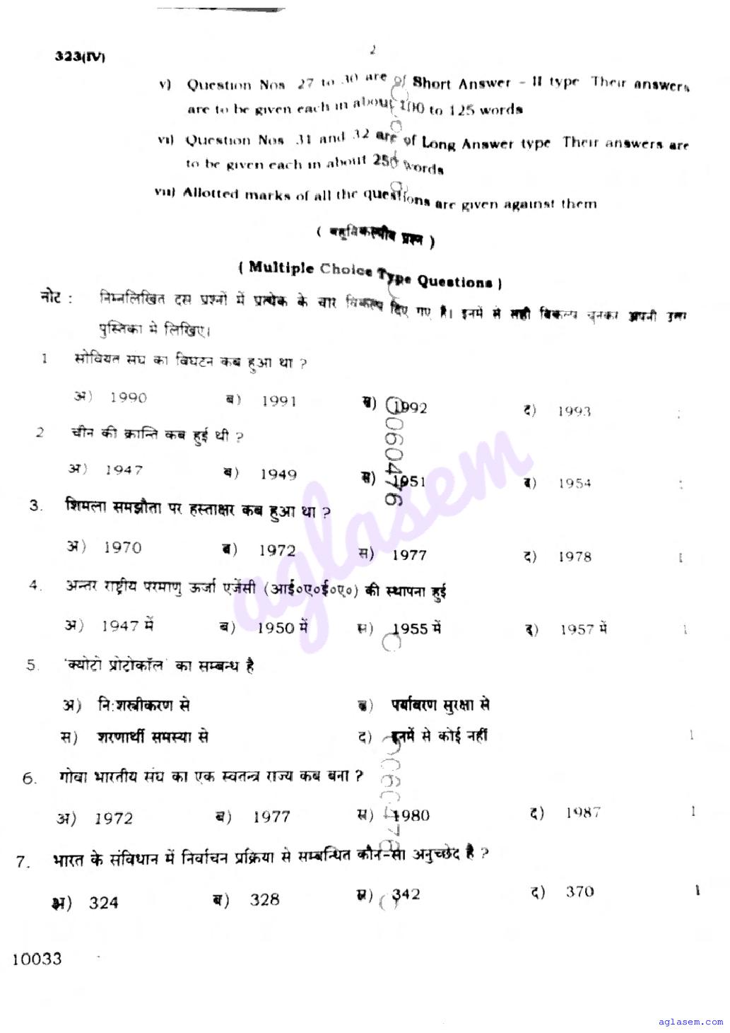 Study Material HereUP Board Previous Year Question Paper of Class 12 Civics