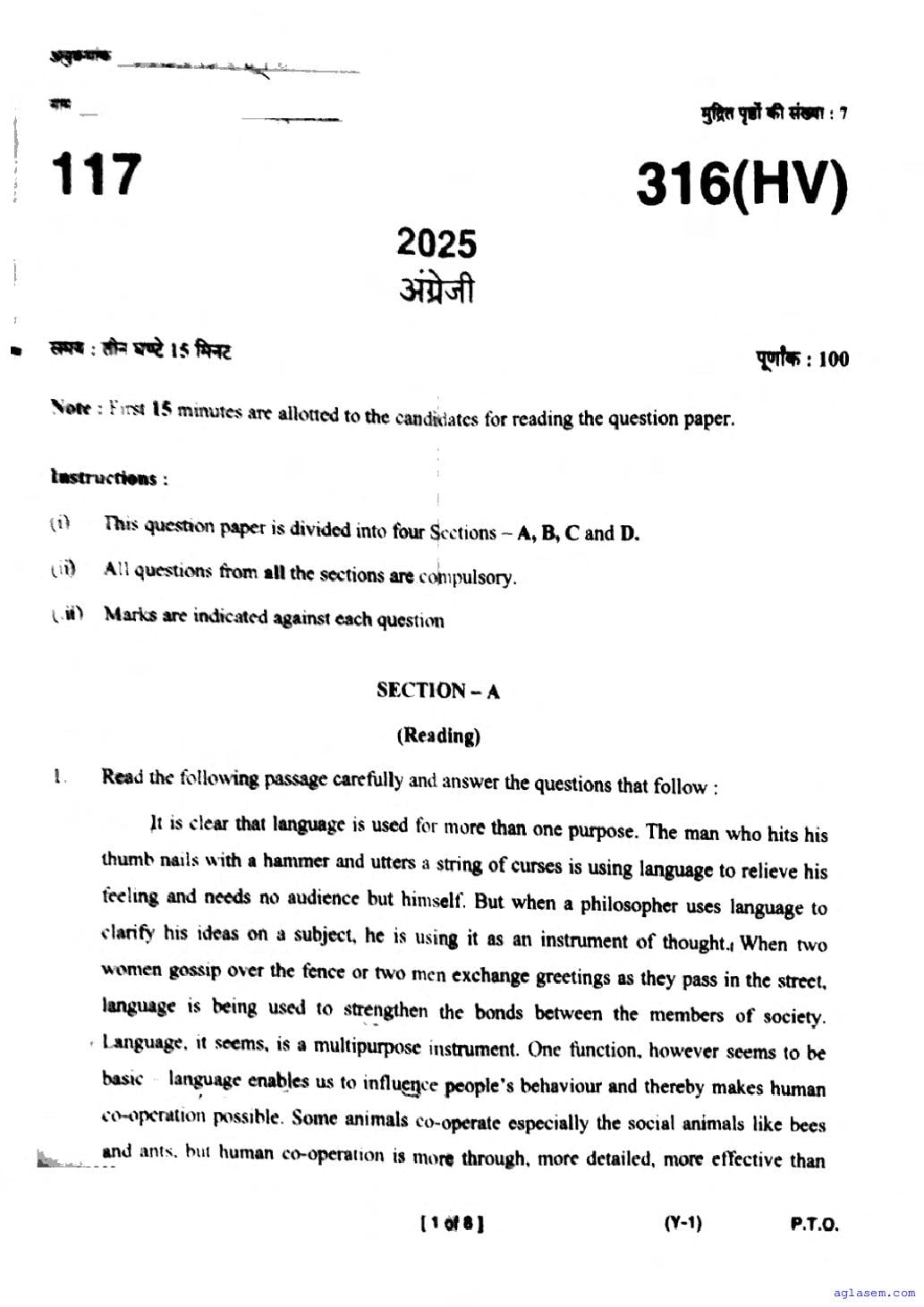 UP Board Class 12 English Question Paper 2026 is published after exam. You can download the UP Board Class 12 English Previous Year Question Paper PDF from here on aglasem to practice for your upcoming paper. It contains actual questions asked in the past year English exam. This UP Board Class 12 Question Paper is for the English subject and helps you understand exam difficulty level, types of questions to expect in exams. Therefore by practising the English question paper, you can improve your preparation for the 12th standard exams and aim to score full marks in English.