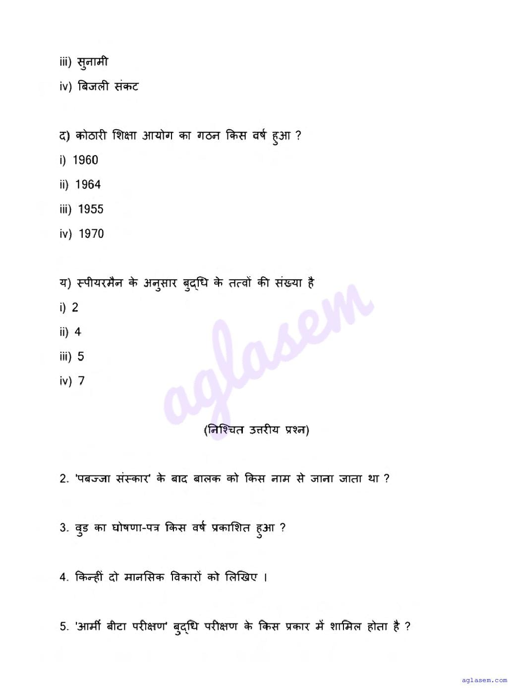 The latest available complete exam paper for Pedagogy is as follows.